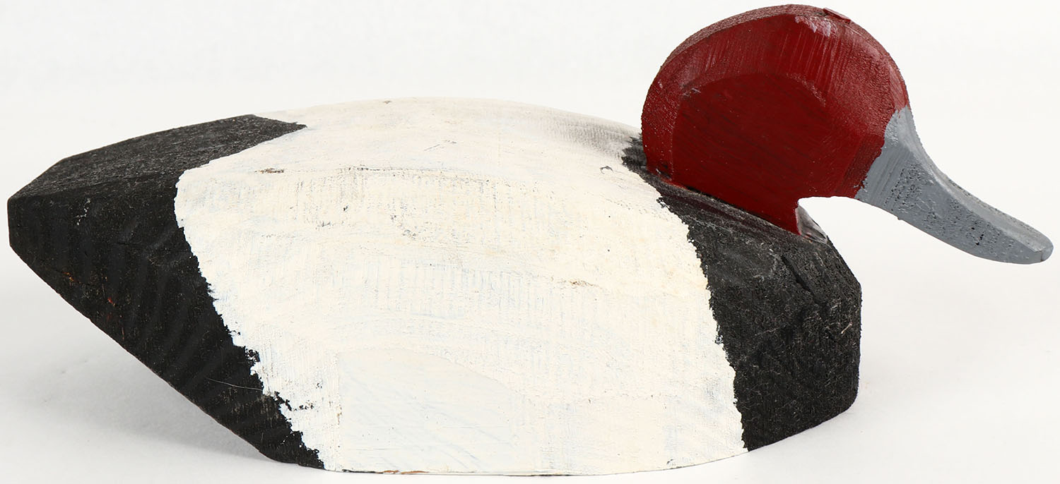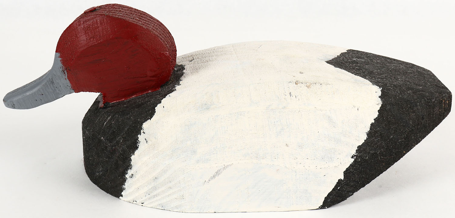 Redhead Drake by Travis Tyler, Crisfield MD, no eyes, solid wood, original paint, 12'' OAL. Grade: Excellent - Value: 20 to 60