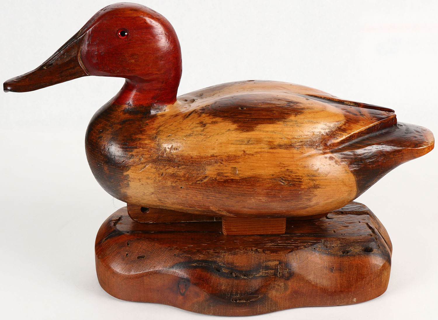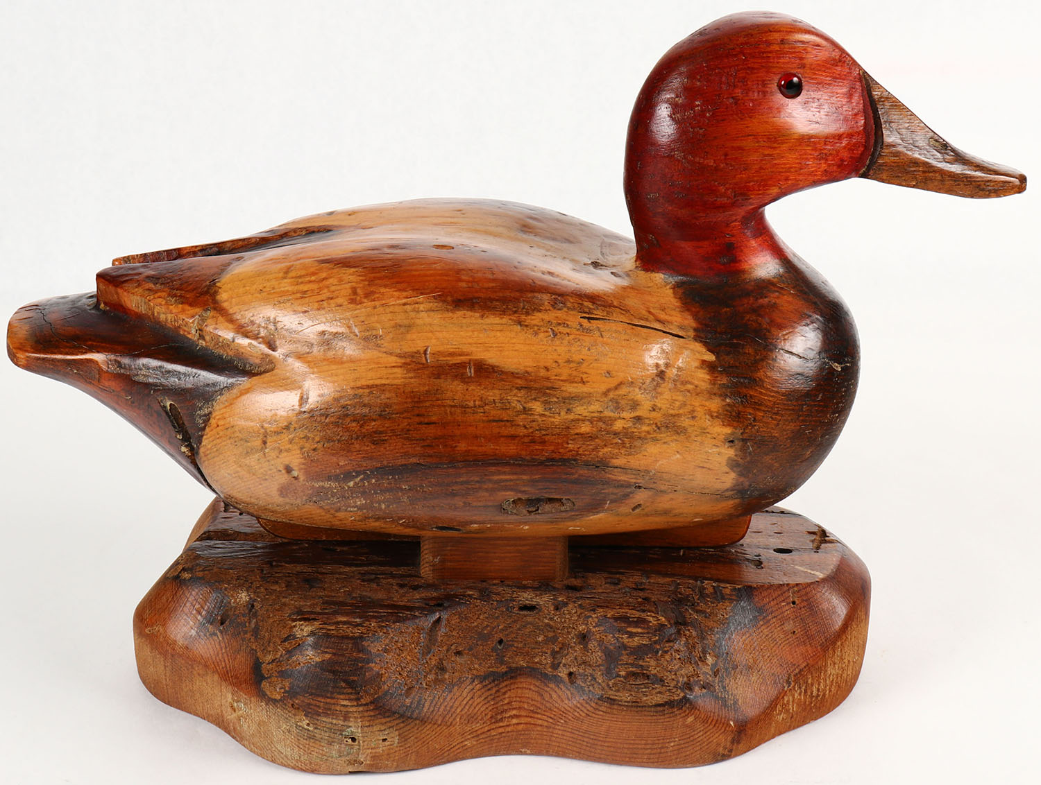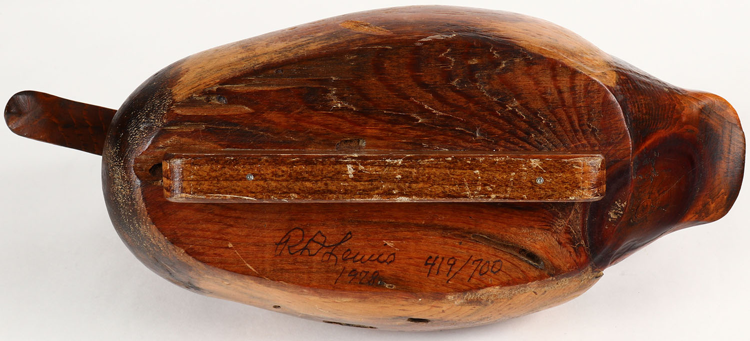 Canvasback Drake by R.D. Lewis, GE, solid wood, original stain, 419/700, has wood base, 14'' OAL. Grade: Excellent - Value: 20 to 60