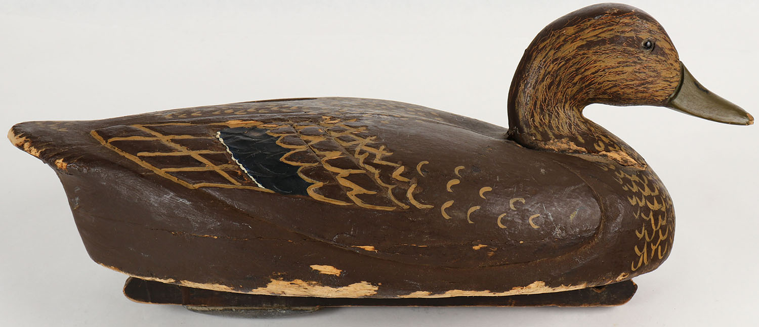 Black Duck by Wildfowler Decoy Co?? Old Saybrook Conn., GE balsa wood, repainted, no stamp on bottom, 14 1/2'' OAL. Grade: Very Good ++ - Value: 20 to 60