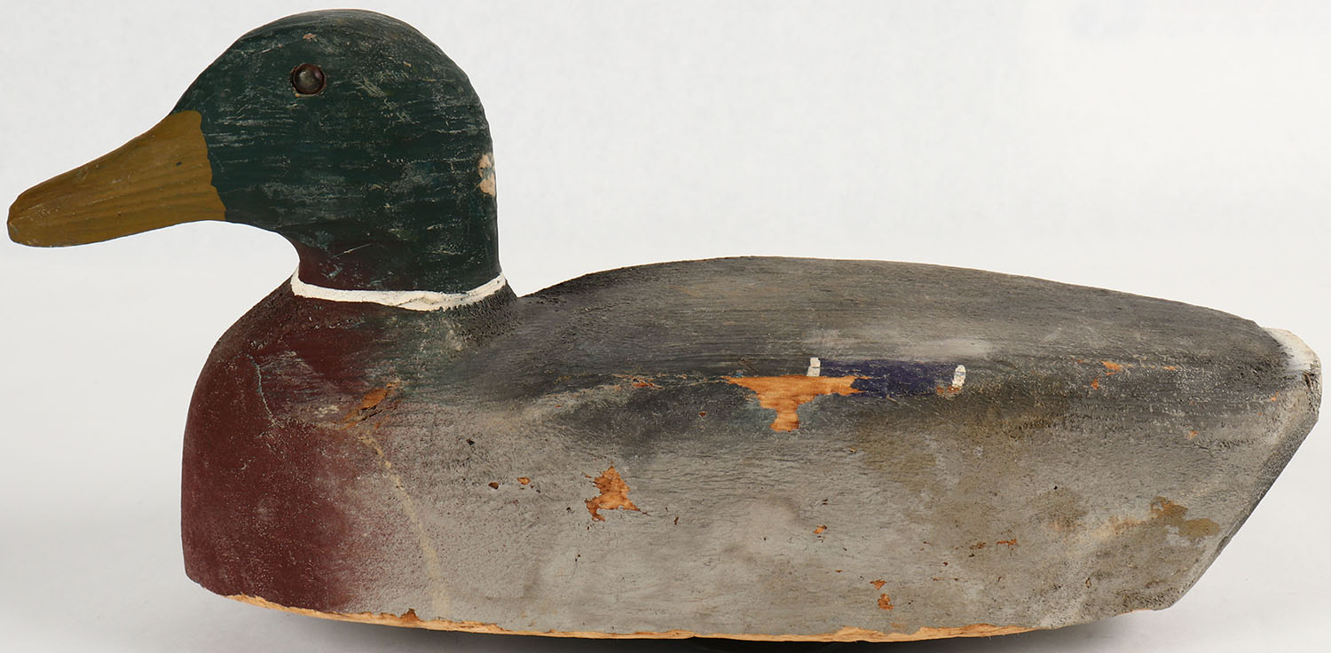 Mallard Drake By Herter's?, TE, balsa wood, original paint, 13 1/2'' OAL. Grade: Very Good ++ - Value: 20 to 60