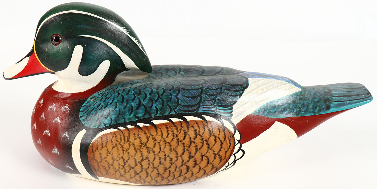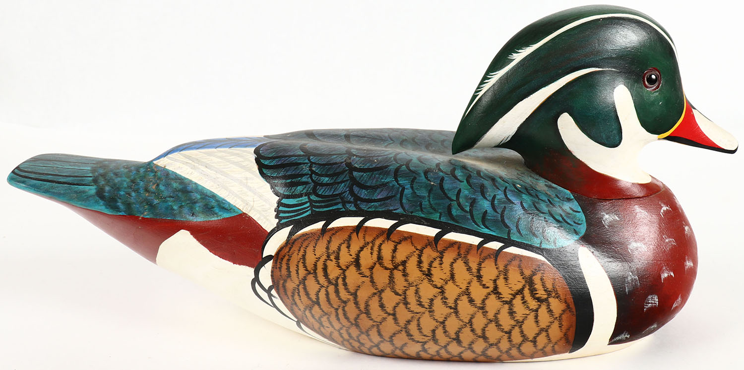 Woodduck Drake by A. Cogo, GE, hollow wood, original paint, 14'' OAL. Grade: Excellent ++ - Value: 20 to 60