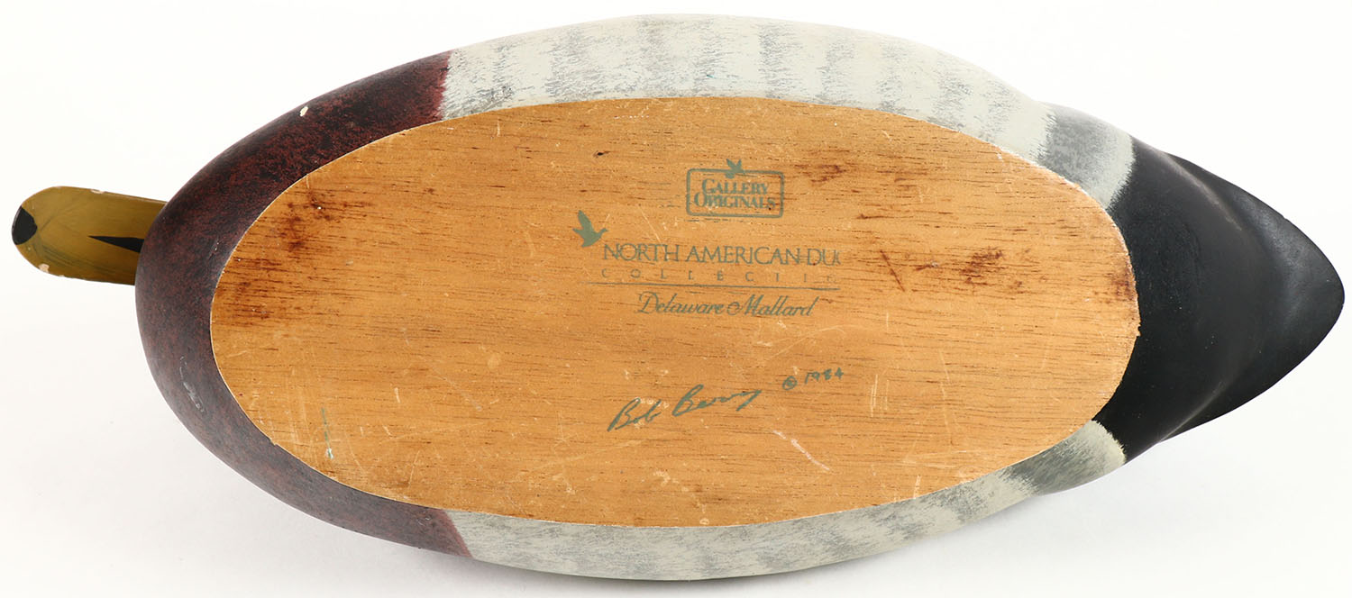 Mallard Drake by Bob Berry, 1984, GE, solid wood, original paint, 13 1/2'' OAL. Grade: Excellent ++ - Value: 20 to 60