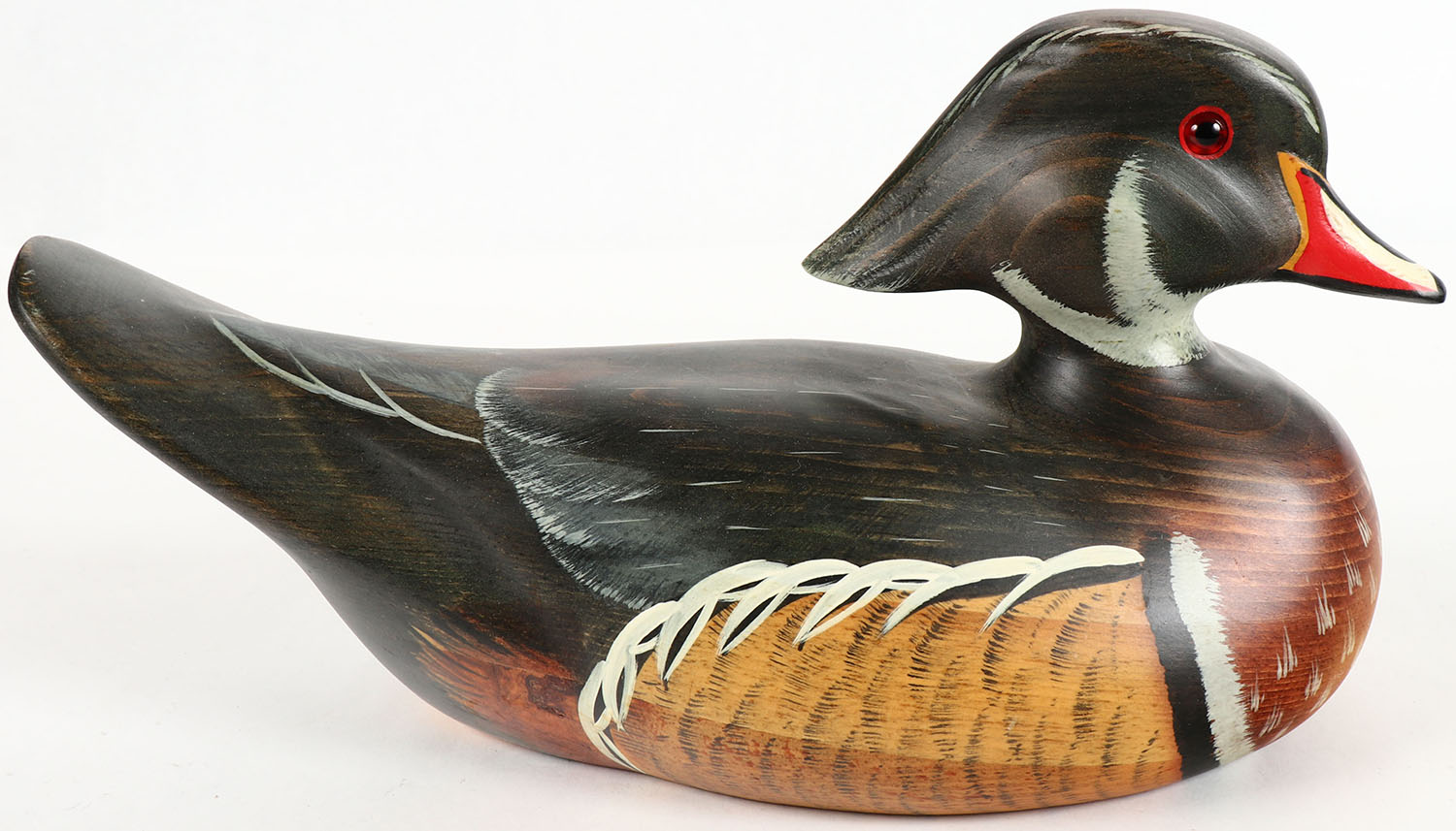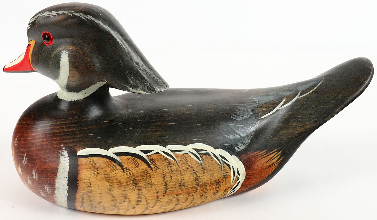 Woodduck Drake by Orvis by Big Sky Carvers, May Seems??, GE, solid wood, original paint, 12'' OAL. Grade: Excellent ++ - Value: 20 to 60