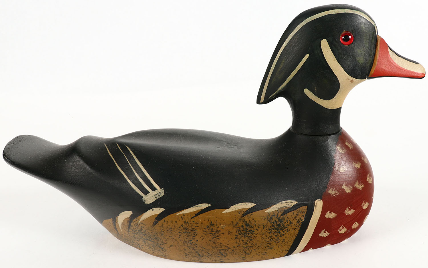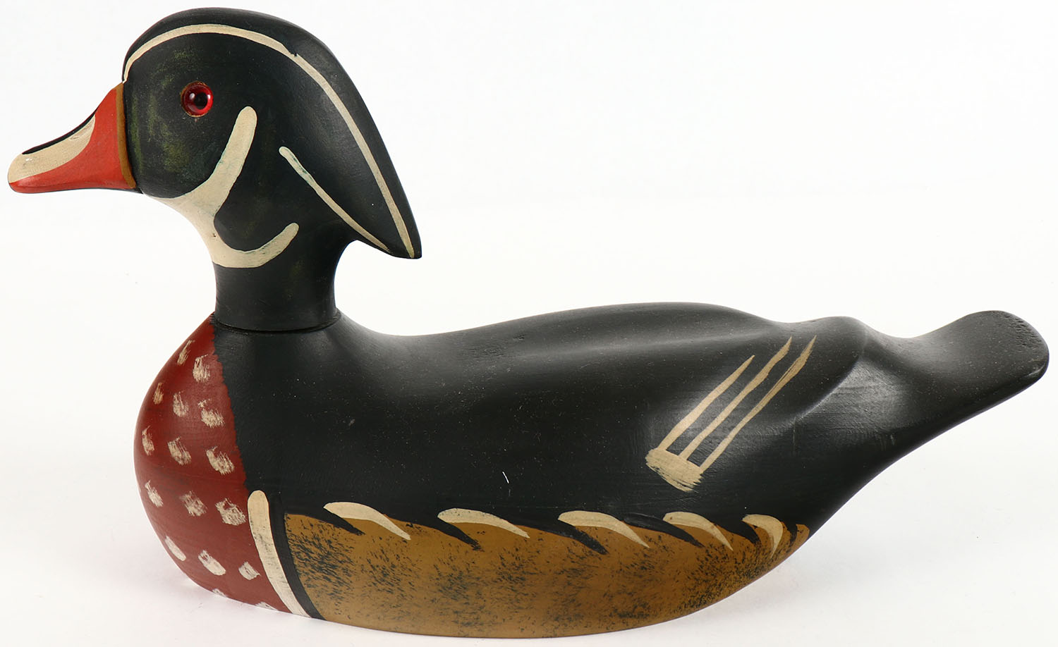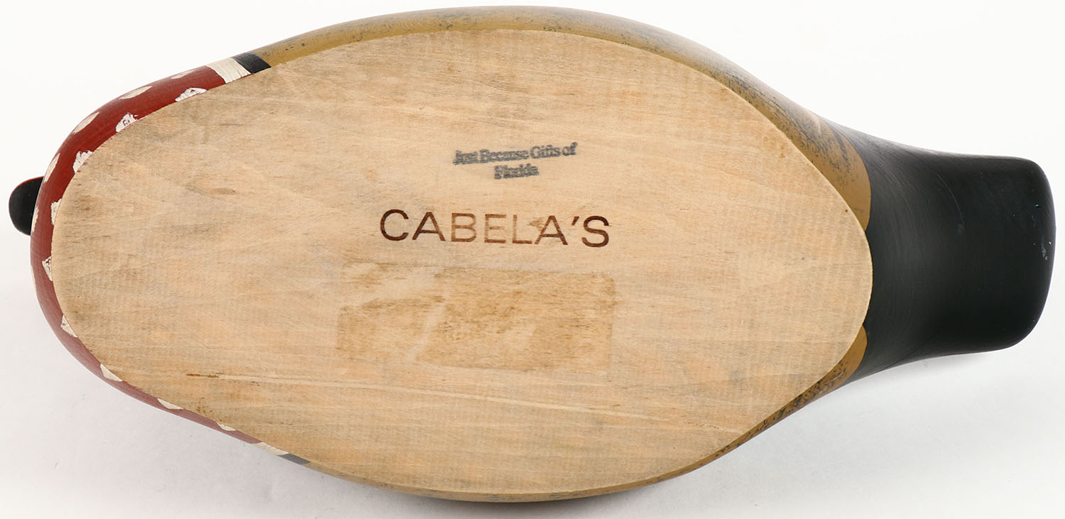Woodduck Drake by Cabela's, GE, solid wood, original paint, 13'' OAL. Grade: Excellent - Value: 20 to 60