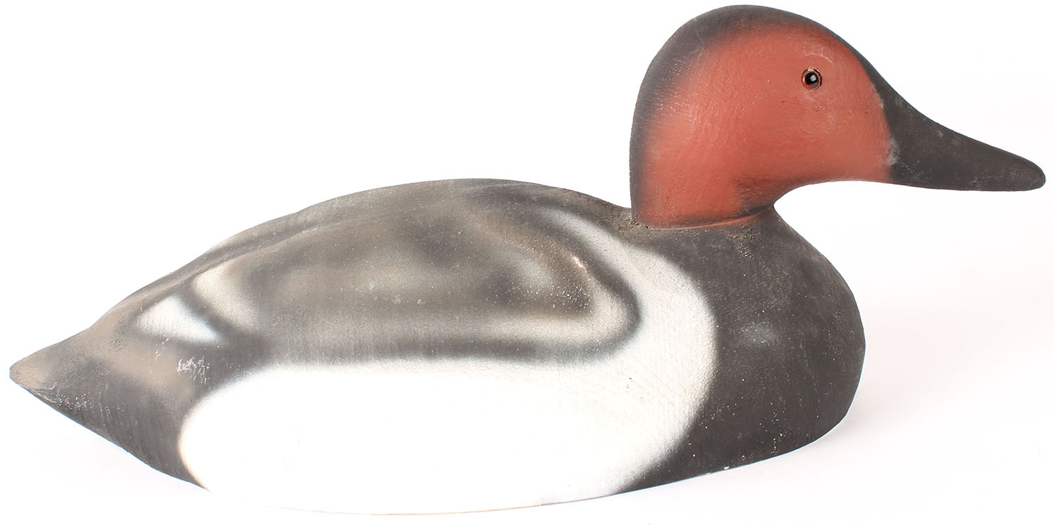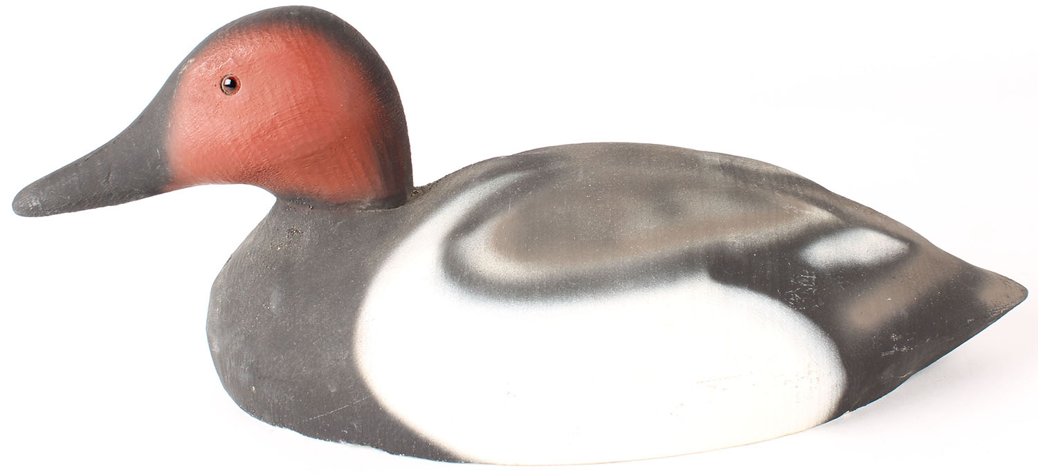 Canvasback Drake by Herters Decoy Co., Waseca, MN, 1893 series glass eyes, solid wood, original paint, structurally excellent, branded on bottom. Grade: Excellent ++ - Value: 50 to 150