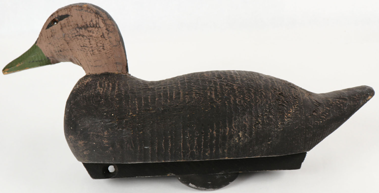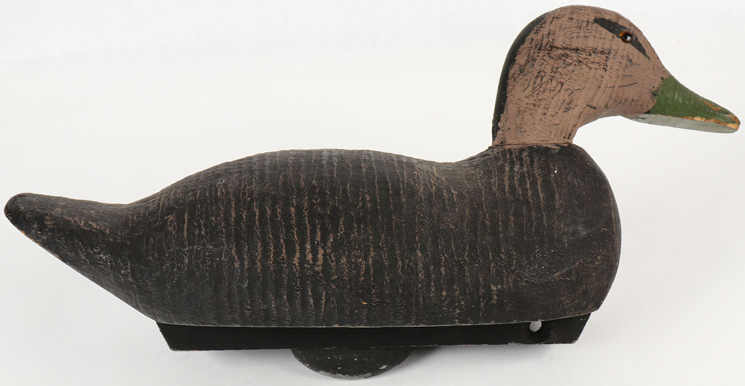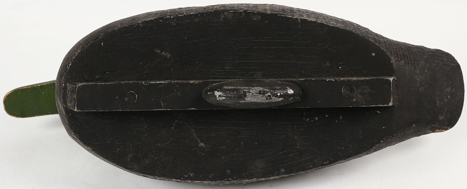 Black Duck by a unknown factory decoy, glass eyes, solid wood, original paint, 16 1/2'' OAL. Grade: Excellent - Value: 10 to 40
