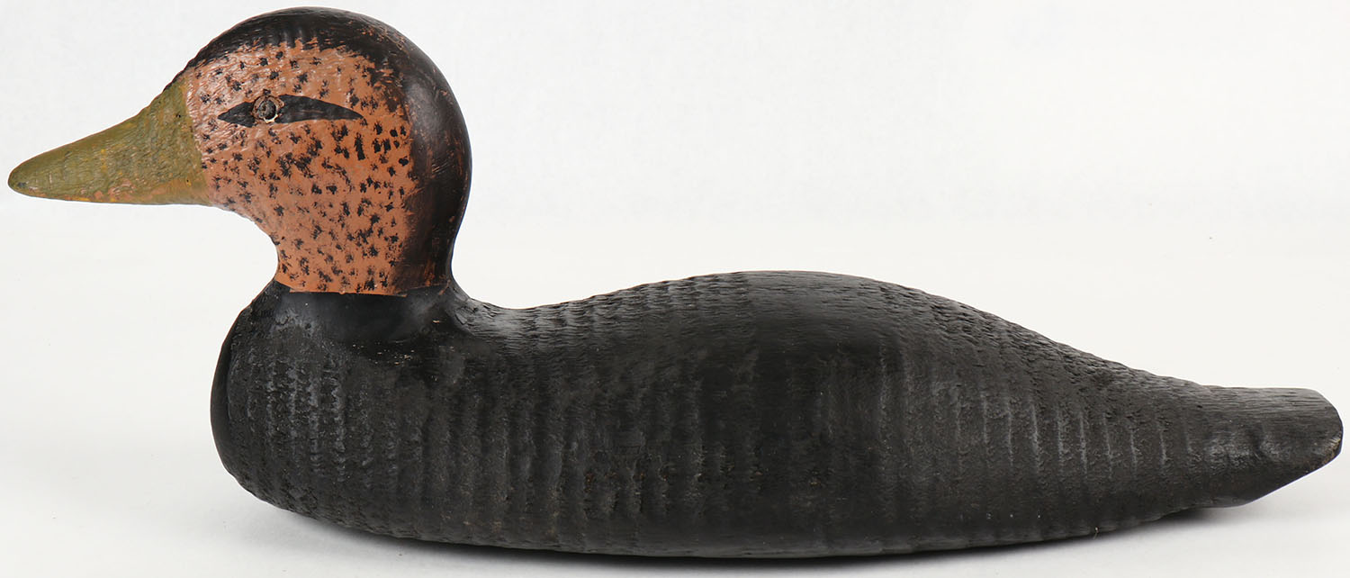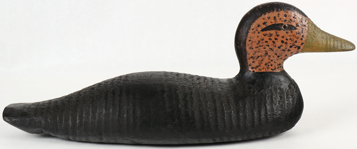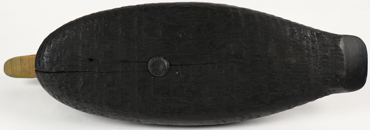 Mallard Drake by a Victor factory, glass eyes, solid wood, old repaint, marked on bottom, 16'' OAL. Grade: Very Good ++ - Value: 10 to 40