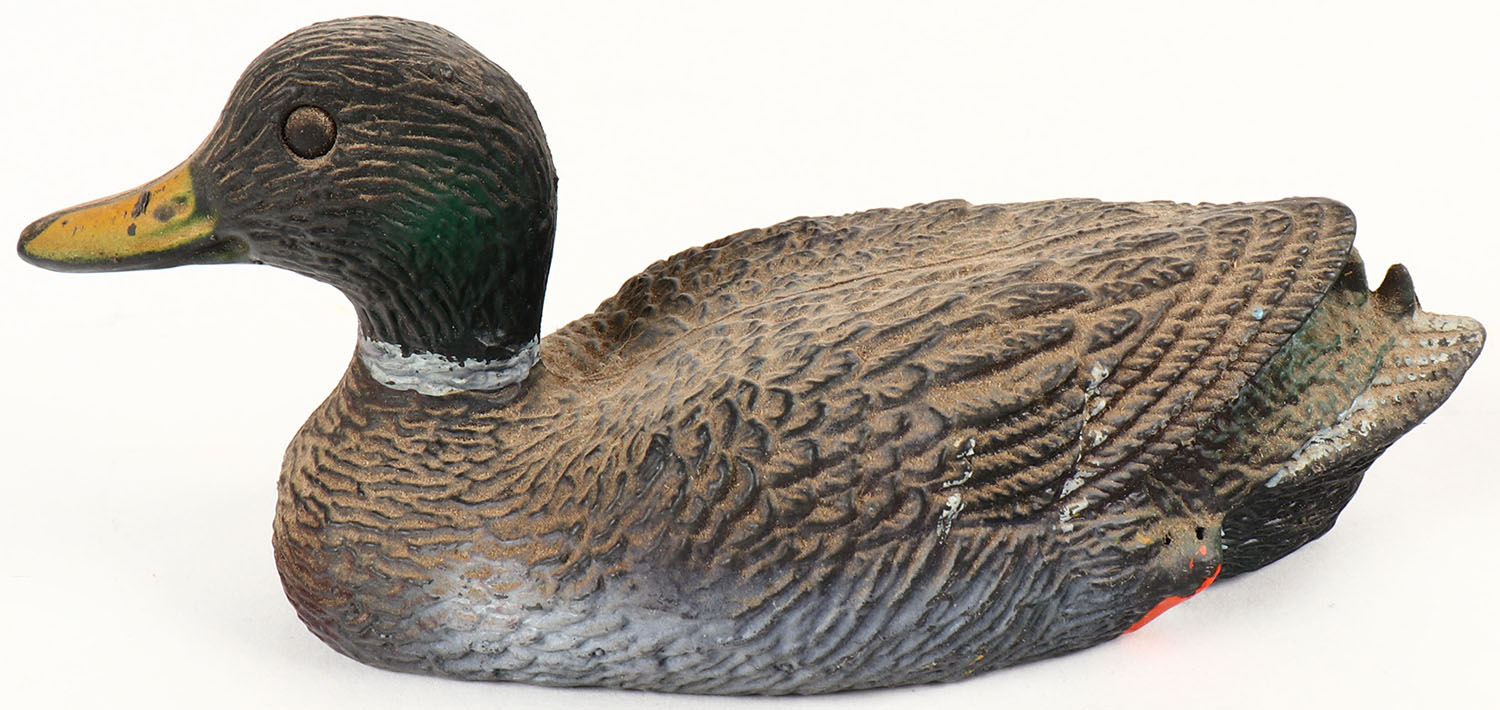 Salesman Sample Mallard Drake decoy by Sport-Plast, plastic, original paint, 6 1/2'' OAL. Grade: Excellent - Value: 10 to 50