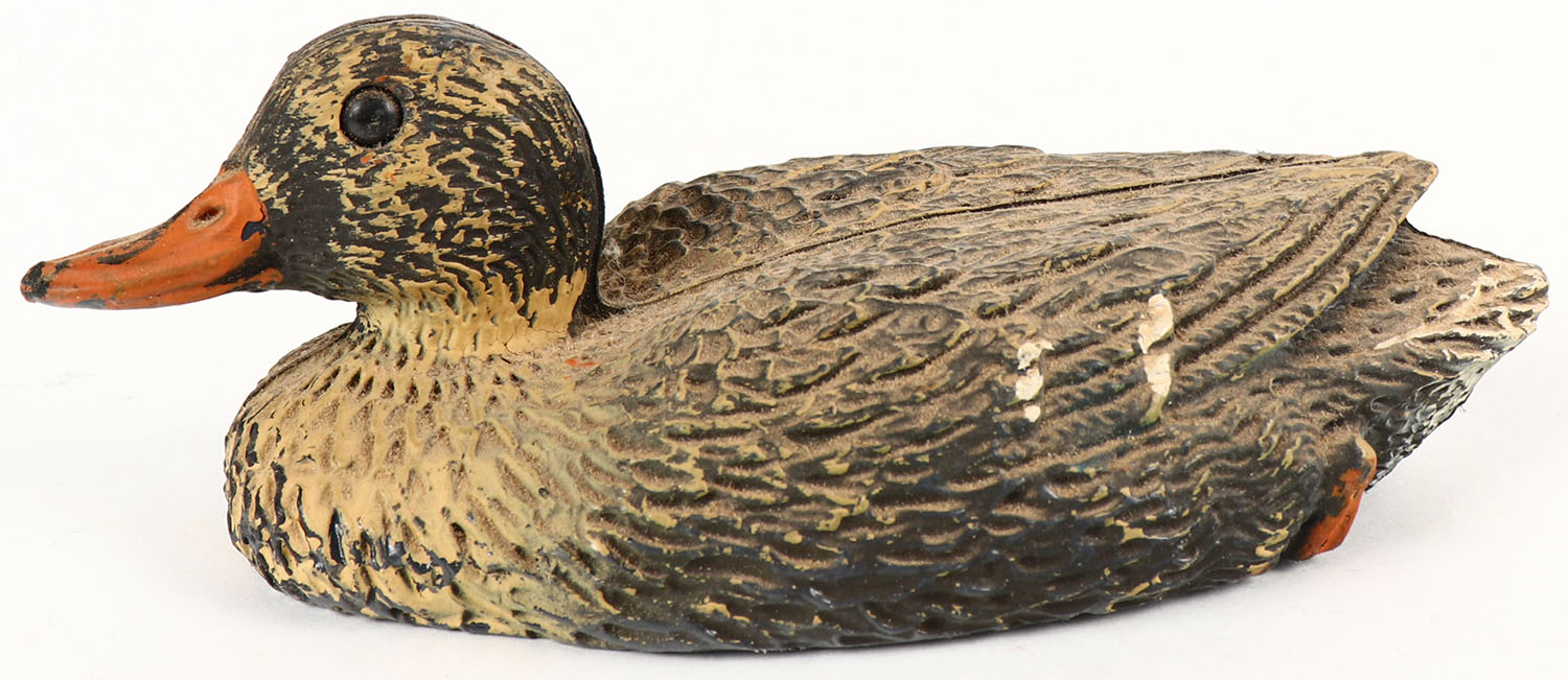 Salesman Sample Mallard Hen decoy by Sport-Plast, plastic, original paint, 6 1/2'' OAL. Grade: Excellent - Value: 10 to 50
