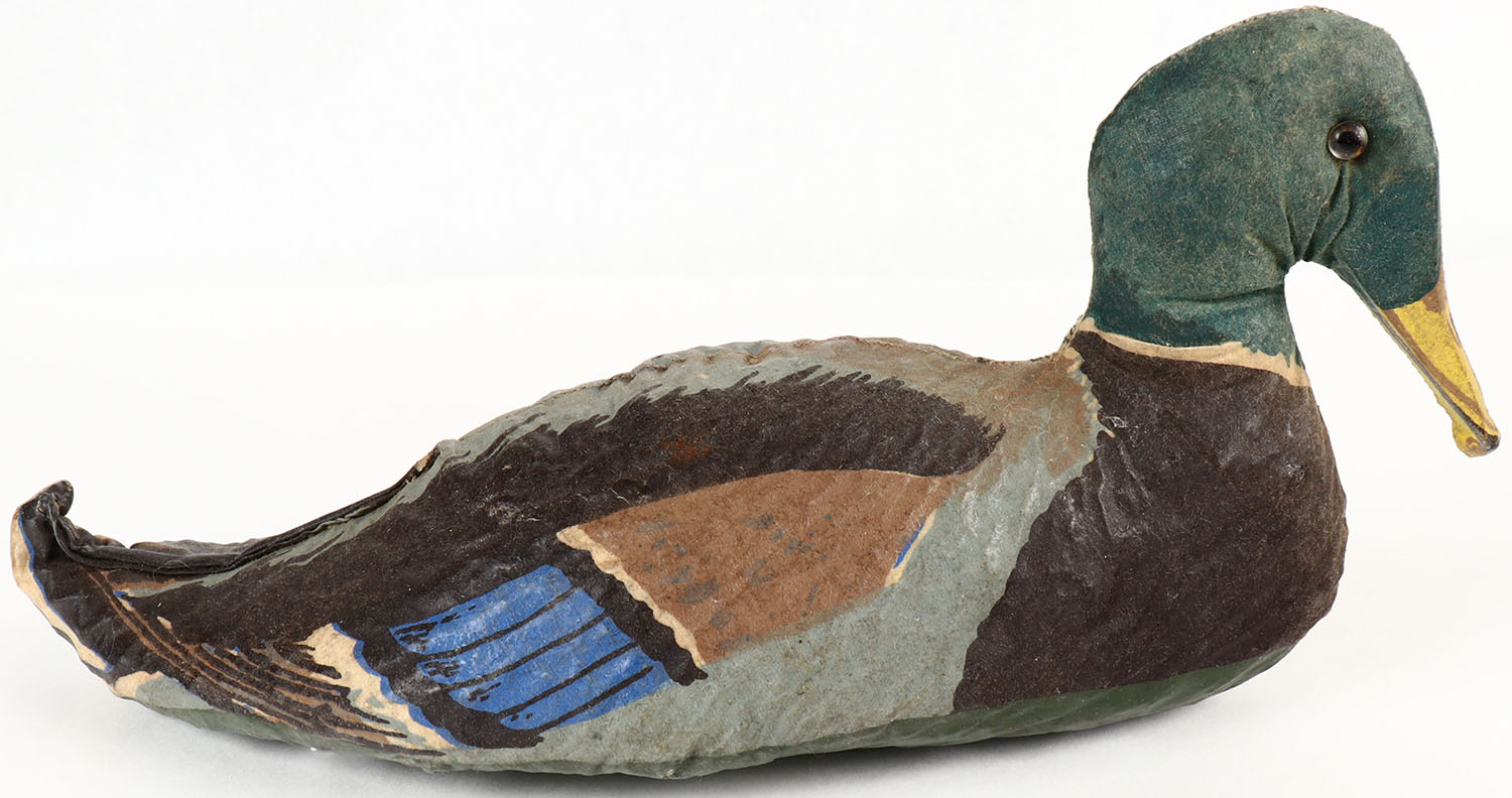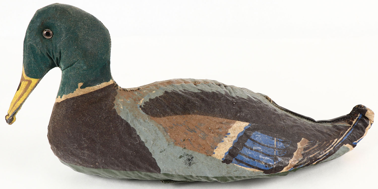 Mallard Drake by Oliveros Decoy Co., Houston, TX, glass eyes, canvas over cork, near mint original paint, structurally excellent. Grade: Excellent ++ - Value: 20 to 40
