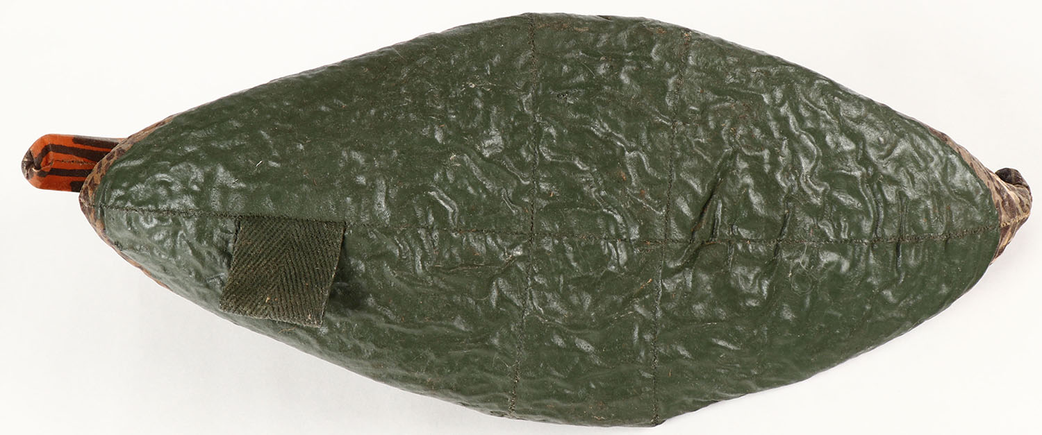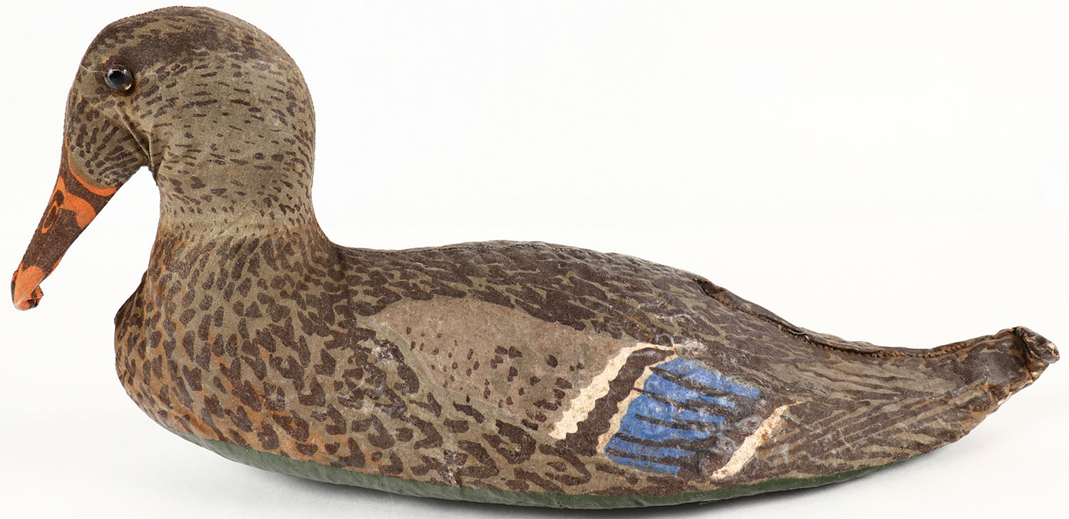 Mallard Hen by Oliveros Decoy Co., Houston, TX, glass eyes, canvas over cork, near mint original paint, structurally excellent. Grade: Excellent ++ - Value: 20 to 40
