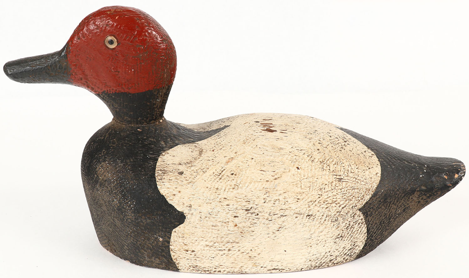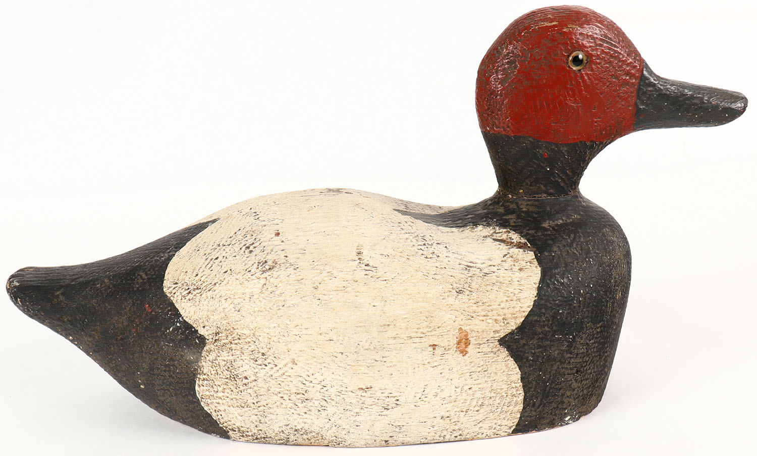 Canvasback Drake by unknown maker, GE, solid wood, original paint, 13'' OAL. Grade: Excellent - Value: 20 to 60