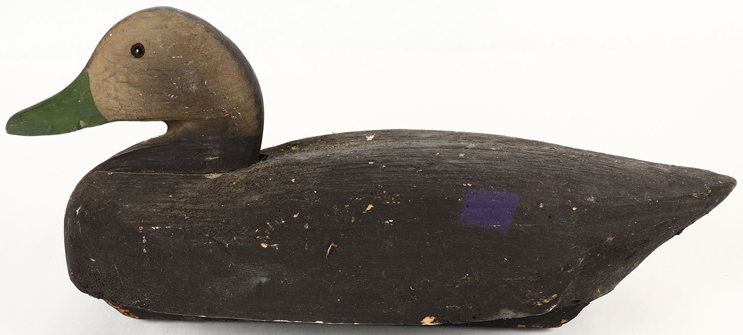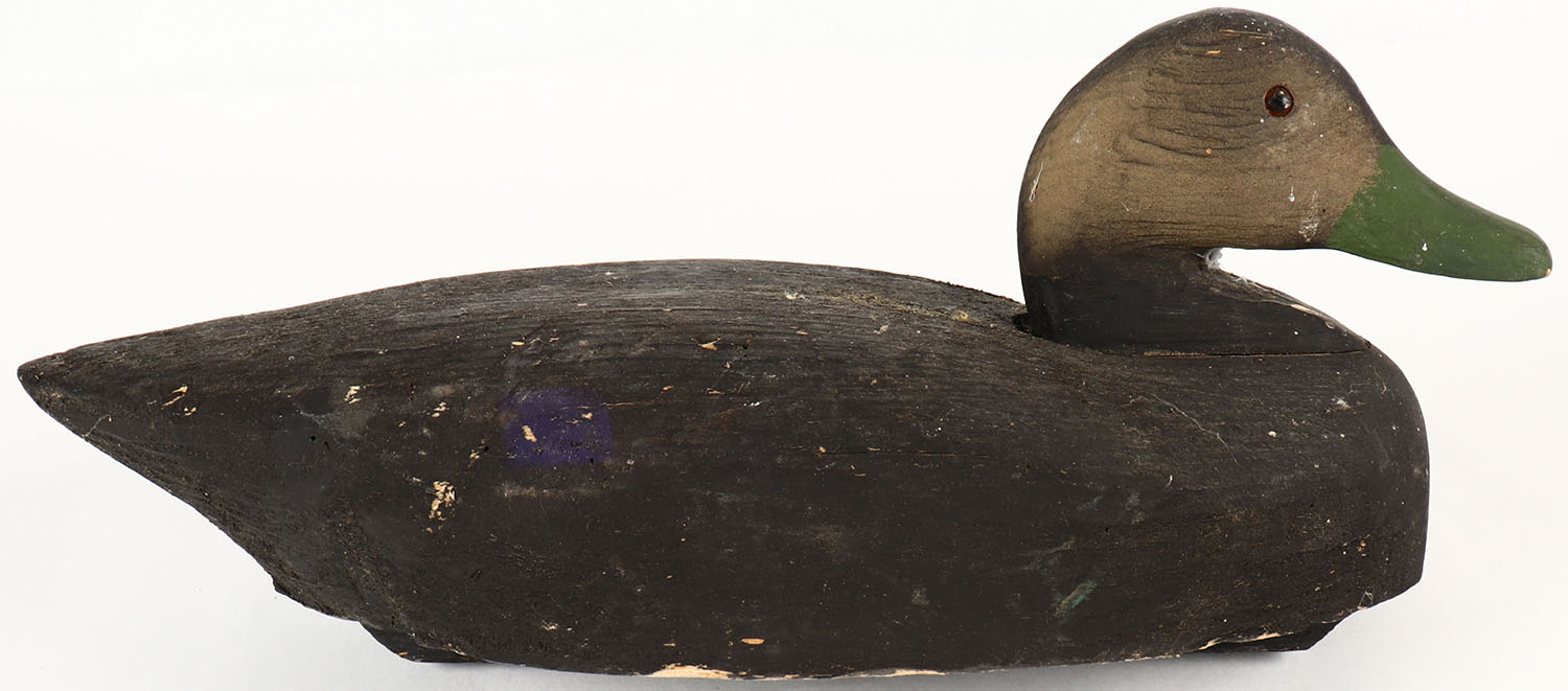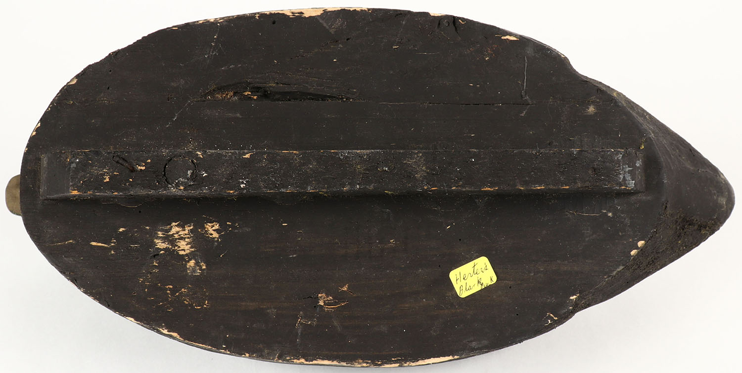 Black Duck by Herter's, unmarked, GE, solid balsa wood, original paint, 15'' OAL. Grade: Excellent - Value: 20 to 50