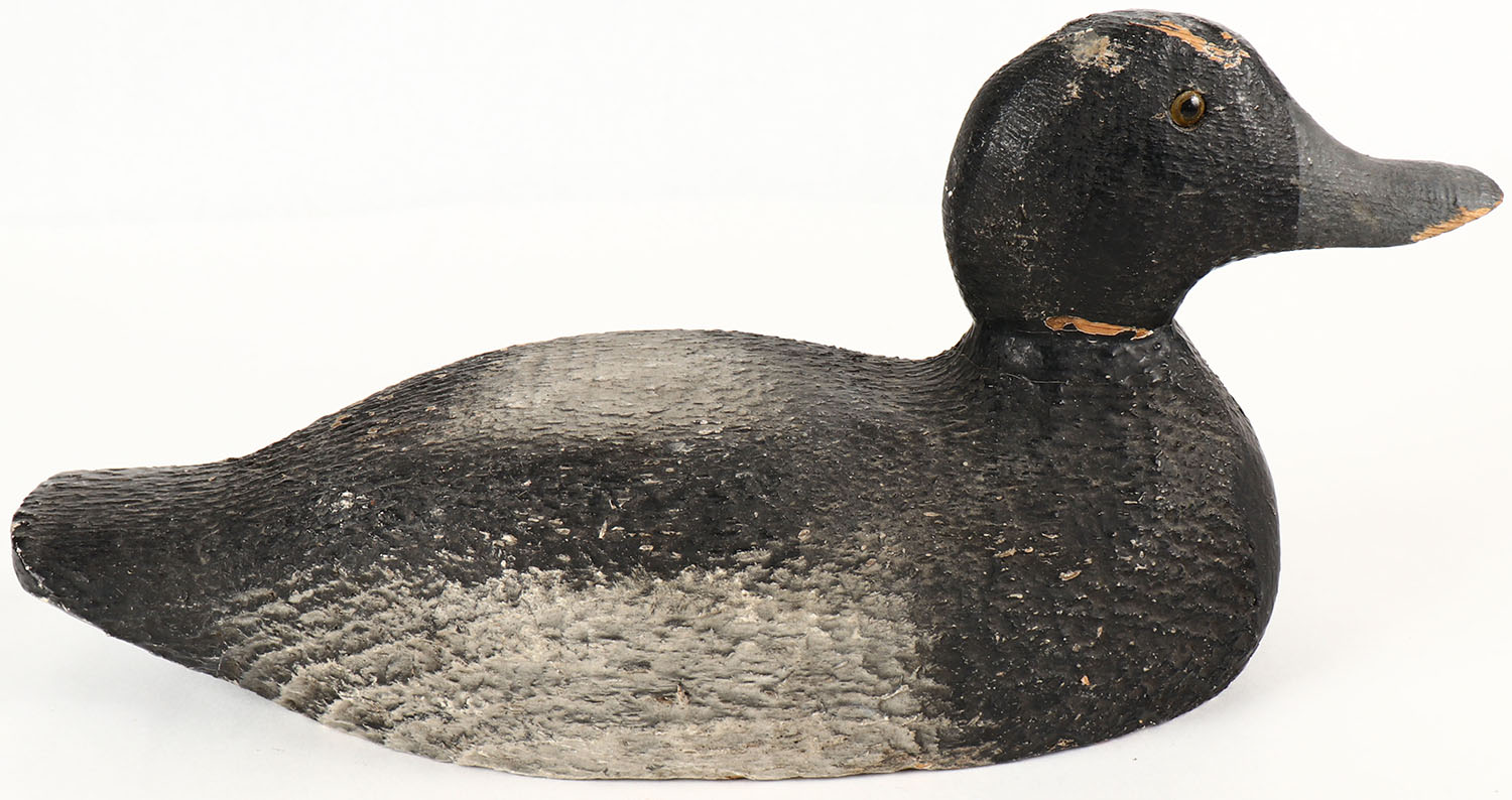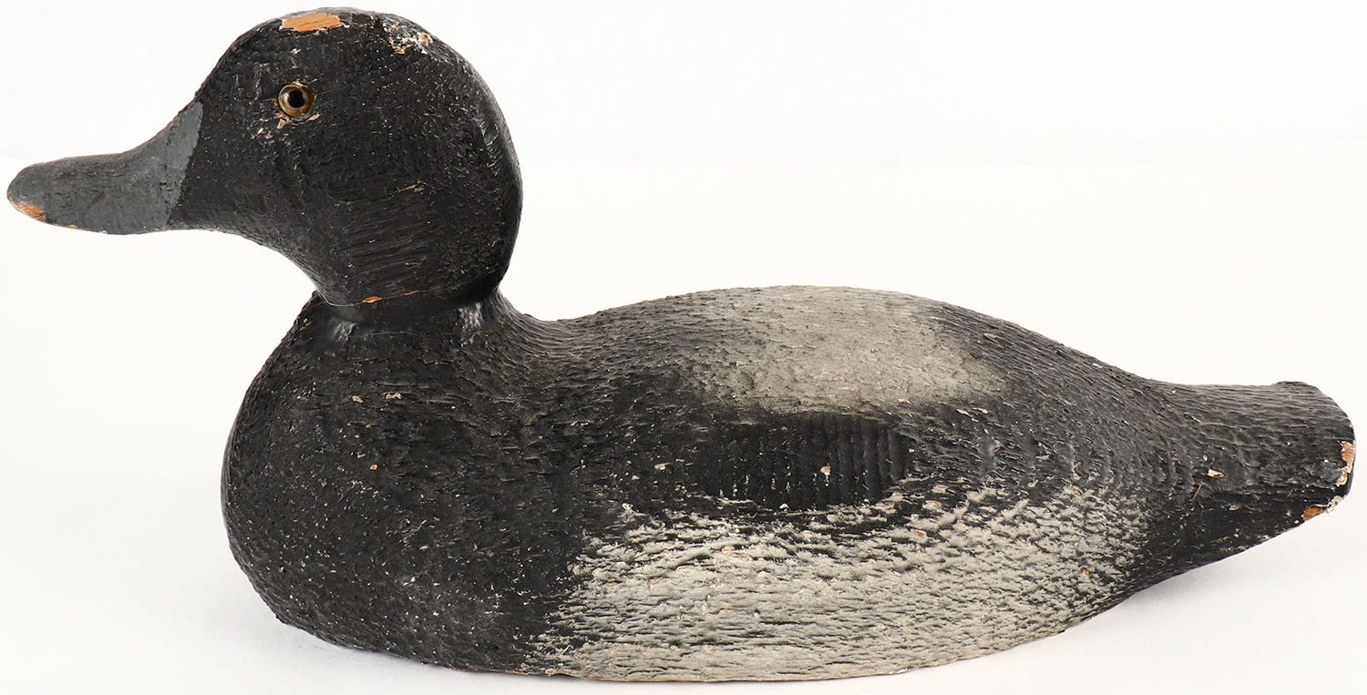 Bluebill Drake by Pratt MFG, glass eyes, solid wood, original paint, structurally excellent, marked on bottom. Grade: Excellent ++ - Value: 40 to 80