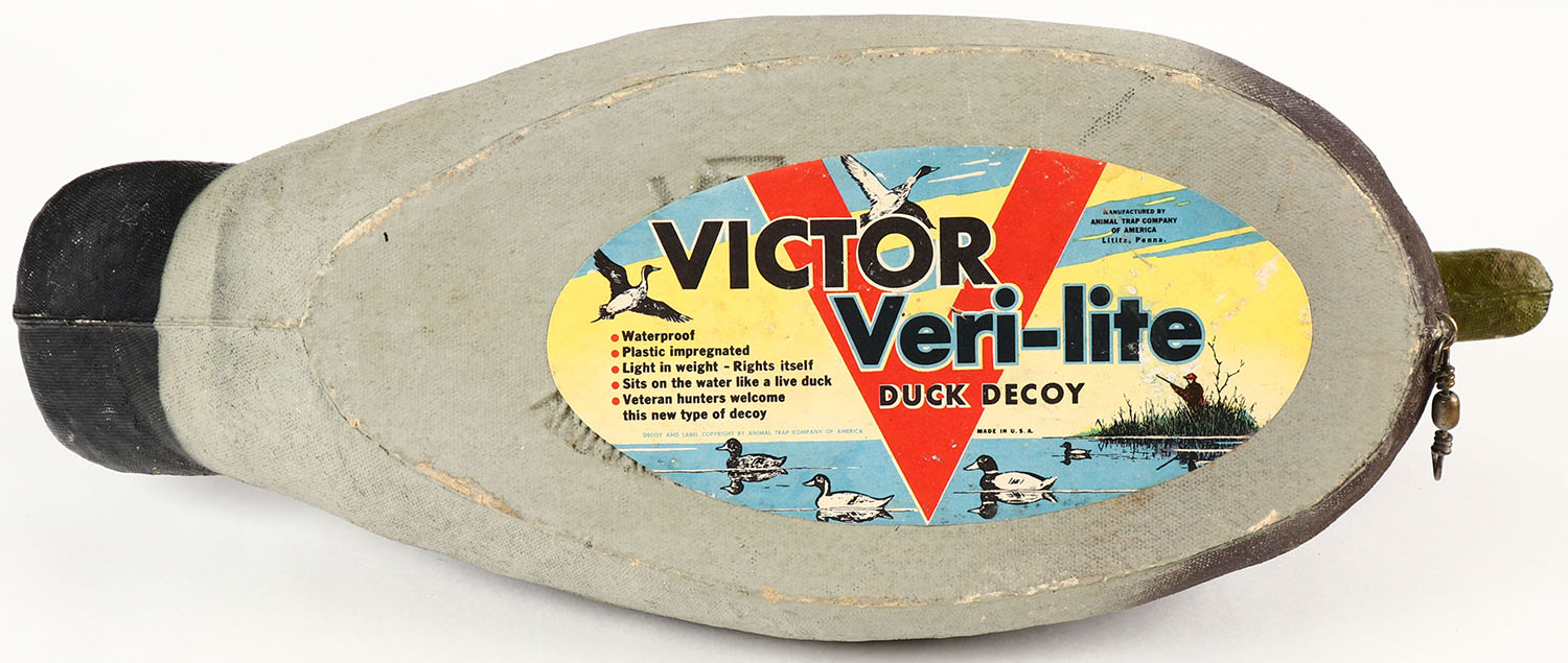 Mallard Drake by Victor Veri-Lite Decoys, Animal Trap Co. Lititz, PA, glass eyes, paper mache, original paint, has colored label on bottom, structurally excellent. Grade: Excellent ++ - Value: 10 to 50