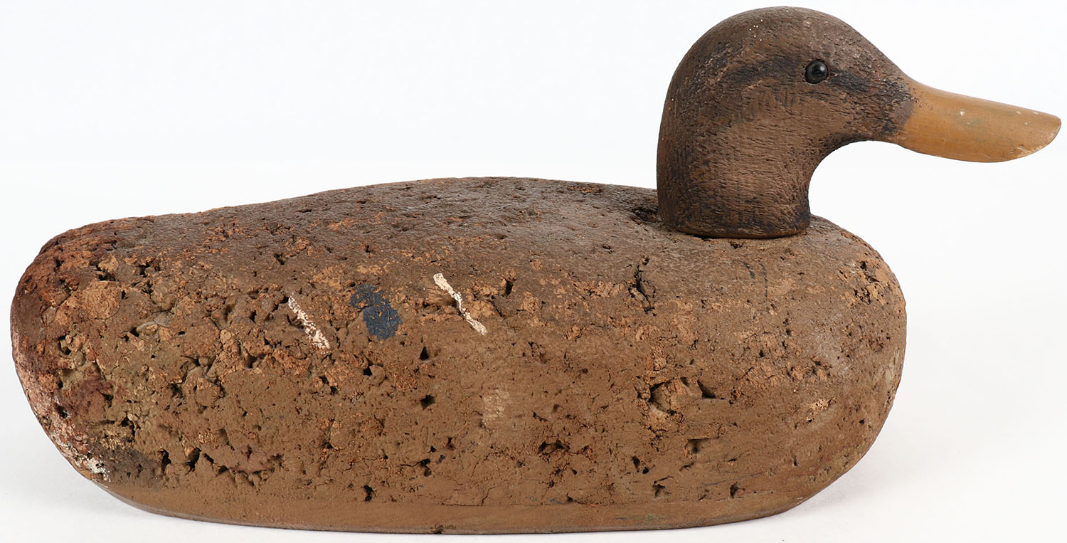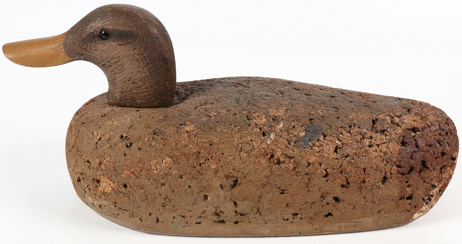Mallard Hen by N.I.M.R.O.D. DUX Decoy Co., GE, solid cork body, original paint. Grade: Very Good ++ - Value: 10 to 30