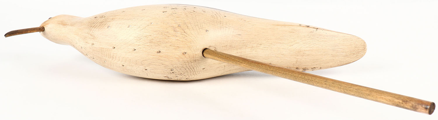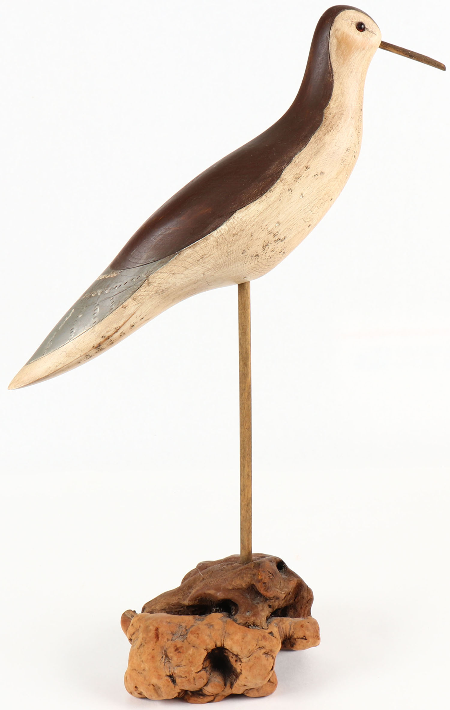 Shorebird by unknown maker, GE, solid wood, original paint, mounted on stand, 12'' OAL. Grade: Excellent - Value: 10 to 30