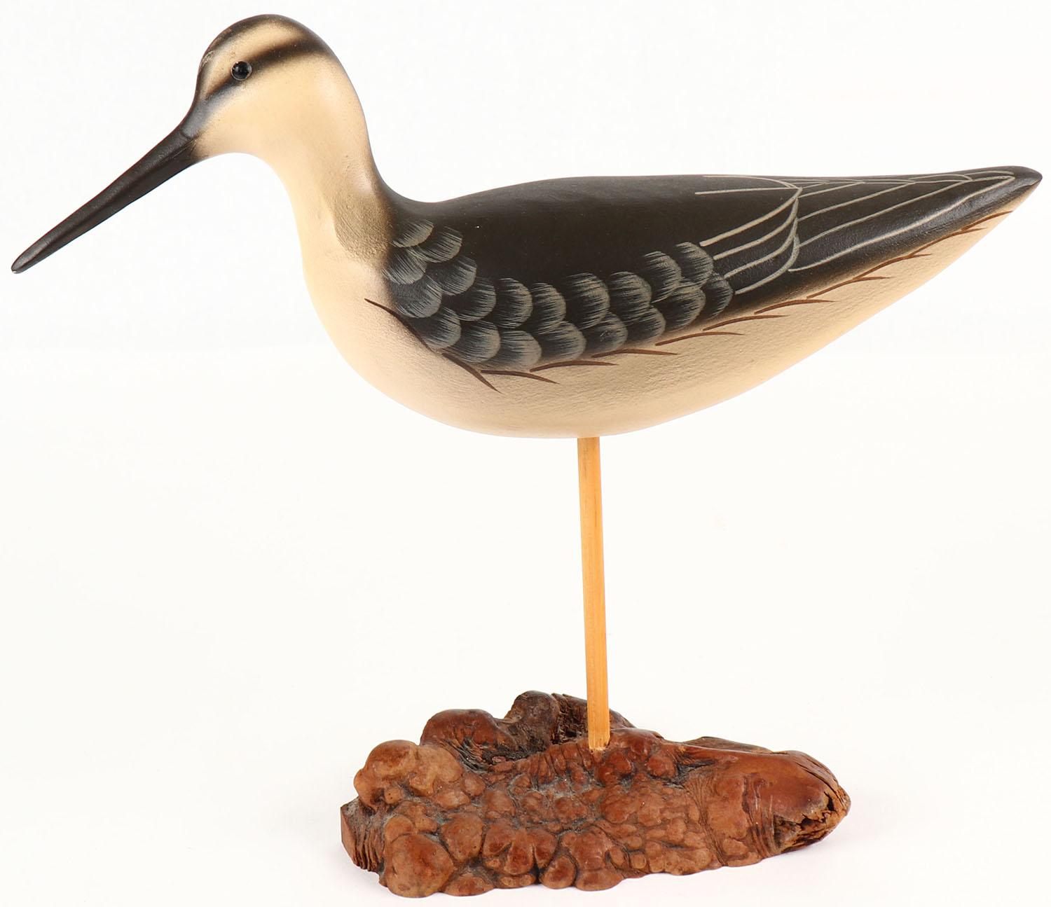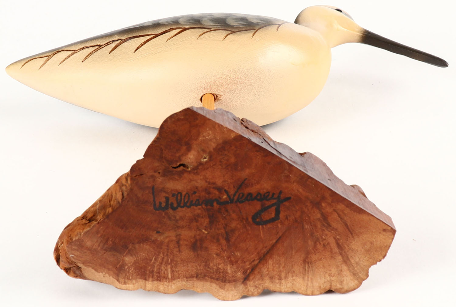Shorebird by William Veasey, GE, solid wood, original paint, on stand, 10'' OAL. Grade: MINT - Value: 6 to 30