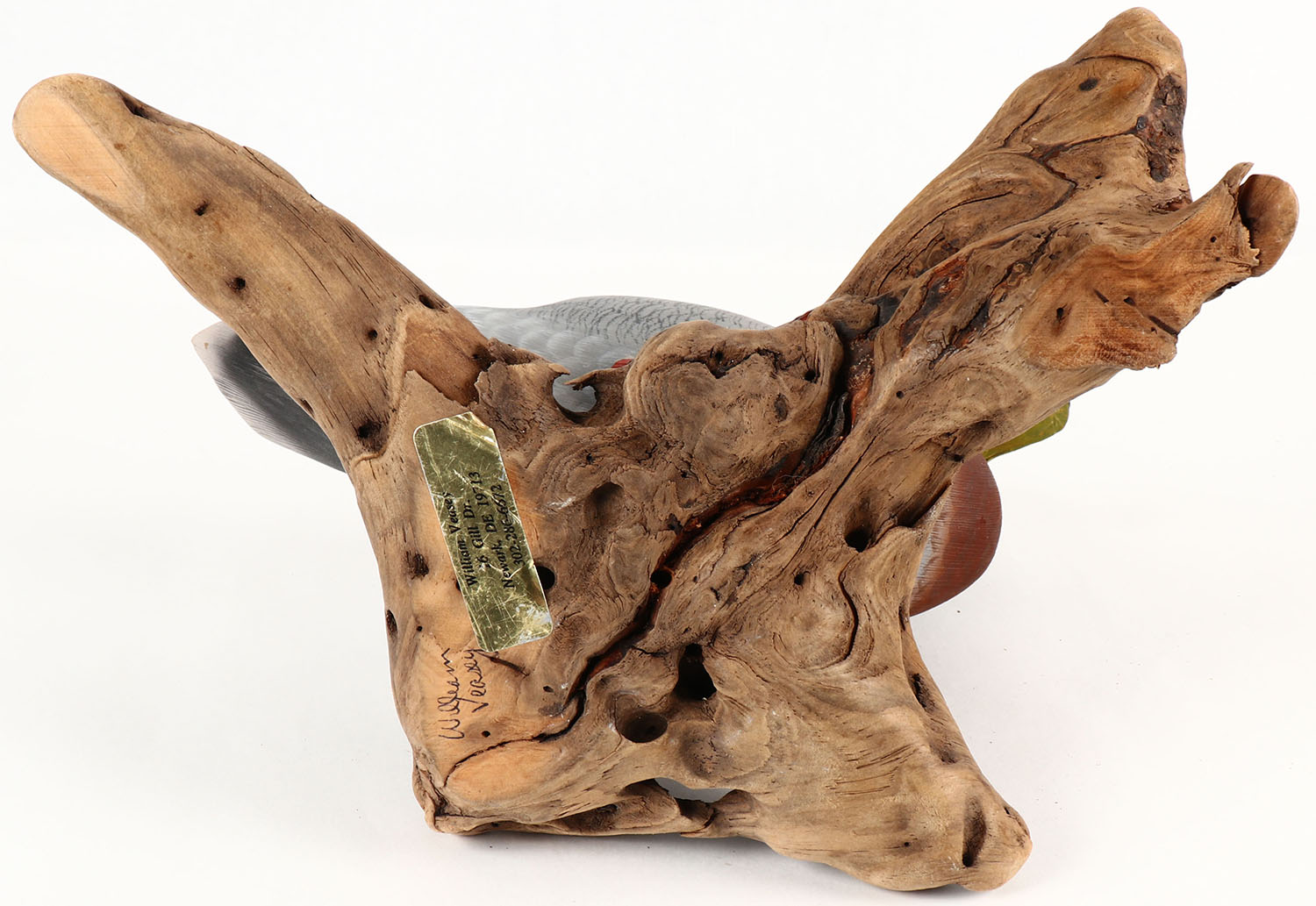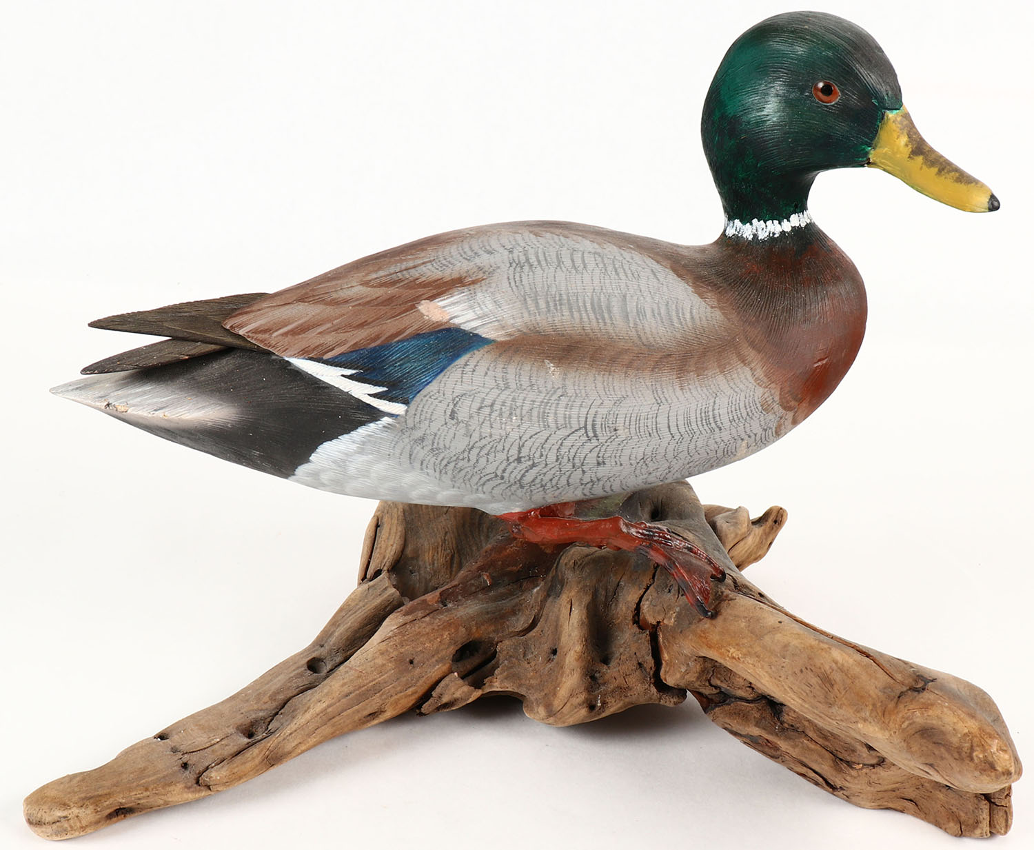 Mallard Drake by William Veasey, GE solid wood, mint original paint, on stand, 11'' OAL. Grade: MINT - Value: 30 to 90