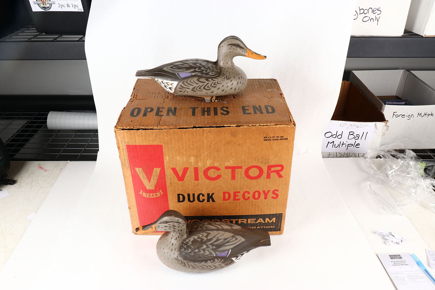 Full Case of 6 Mallard Ducks by Victor Animal Trap Co. Lititz, PA, in the original box, rare to find the original box. Grade: MINT - Value: 70 to 200