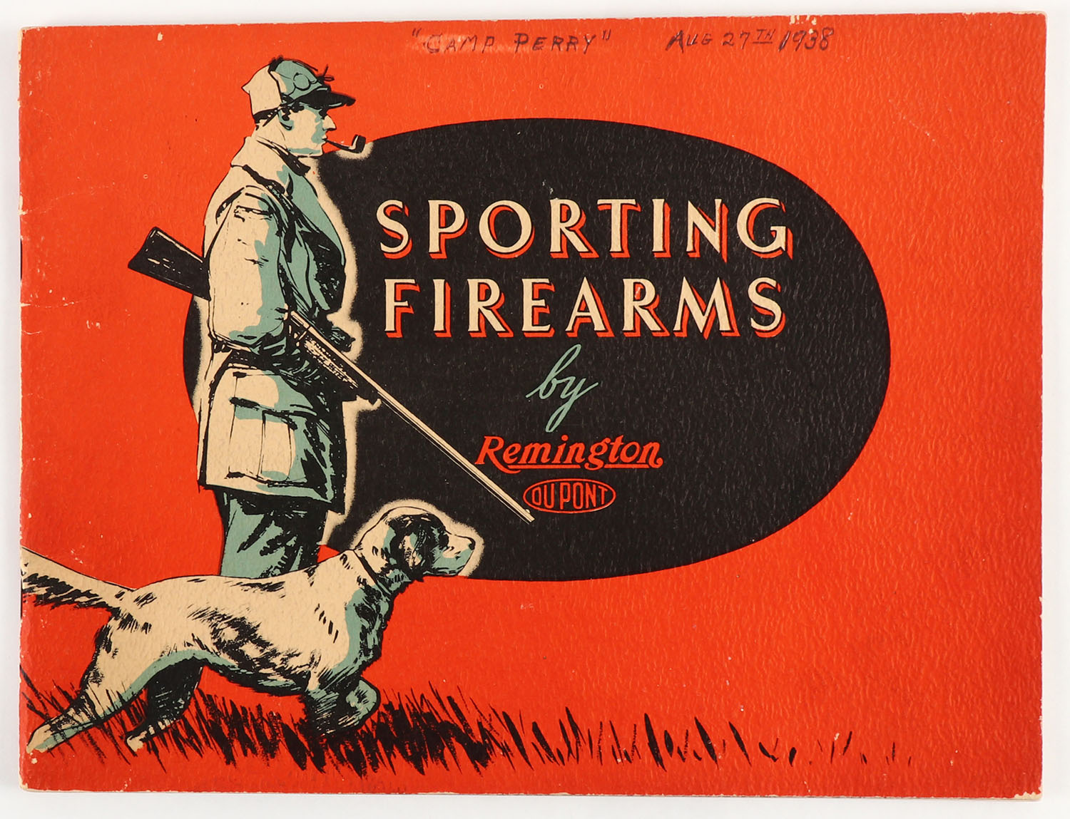 Remington Sporting Firearms catalog, 1938, pictures Guns, 11'' x 8 1/2''. 43 pages, pages clean, binding tight, soft cover is nice and marked ''Camp Perry Aug. 29th 1938''. Grade: Excellent - Value: 20 to 100