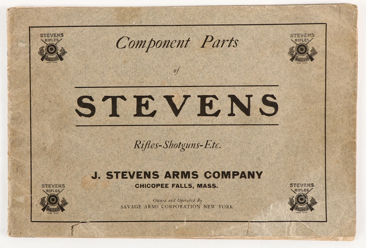 J. Stevens Arms Co. Rifles - Shotguns - Etc. catalog, pictures guns parts break down of many guns, 9'' x 6'', soft cover is nice with some wear, pages are nice. Grade: Very Good ++ - Value: 20 to 100