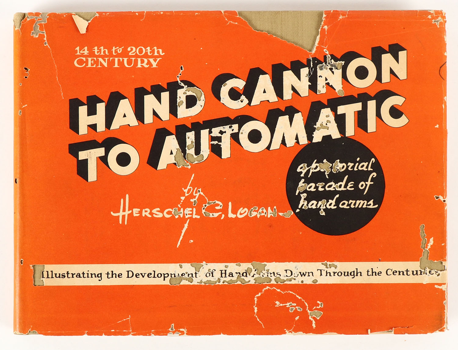 Hand Cannon To Automatic by Herschel C. Logan, 1944, 8'' x 11'', 172 pages, pages clean, binding tight, hardcover excellent, dust jacket poor with multiple tears, b/w images. Grade: Very Good - Value: 10 to 40