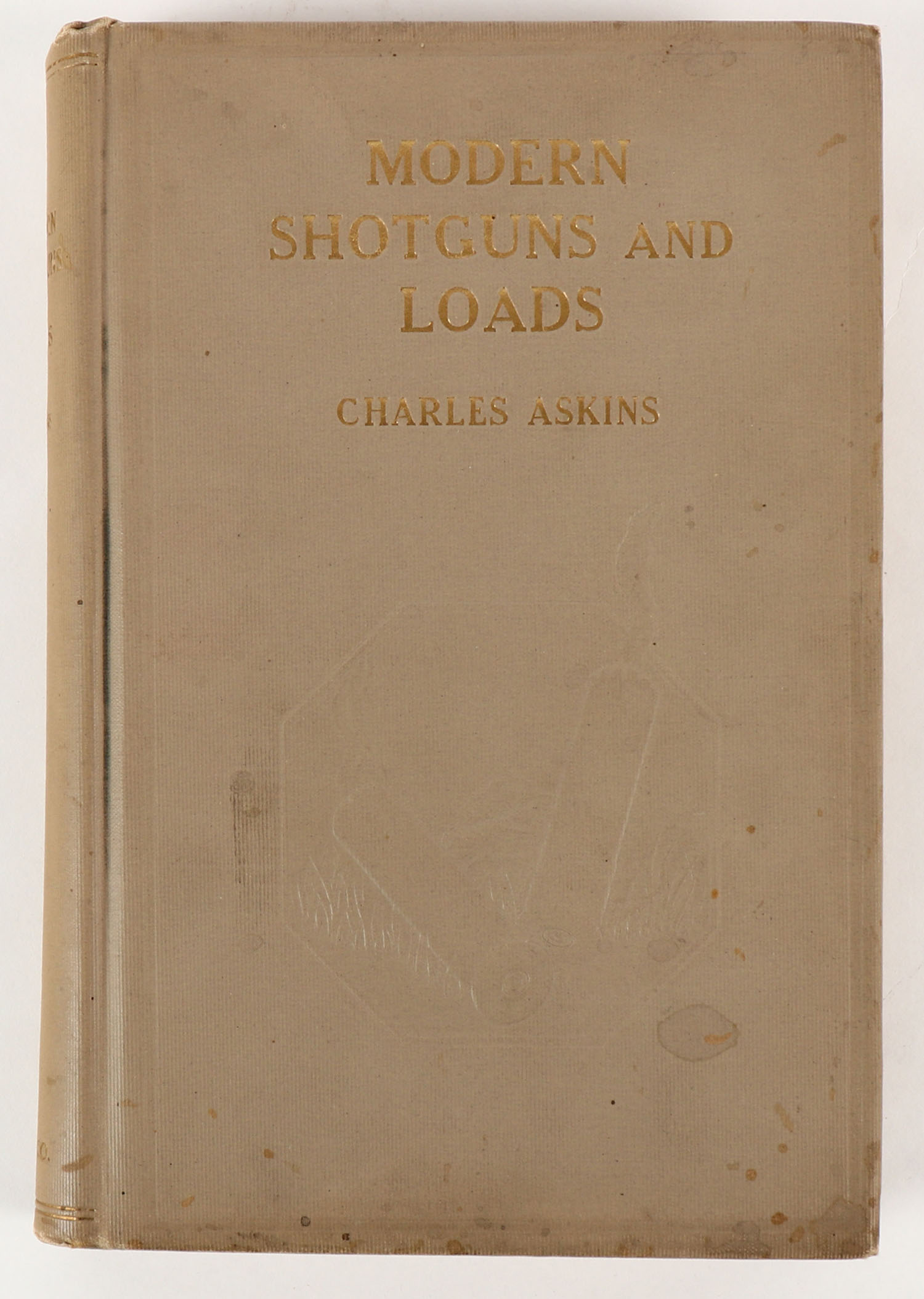 Modern Shotguns And Loads by Charles Askins, 1929, 6'' x 8 1/2'', 416 pages, pages clean with pencil writing on first blank page, binding tight, hardcover good with soiling. Grade: Good++ - Value: 5 to 35
