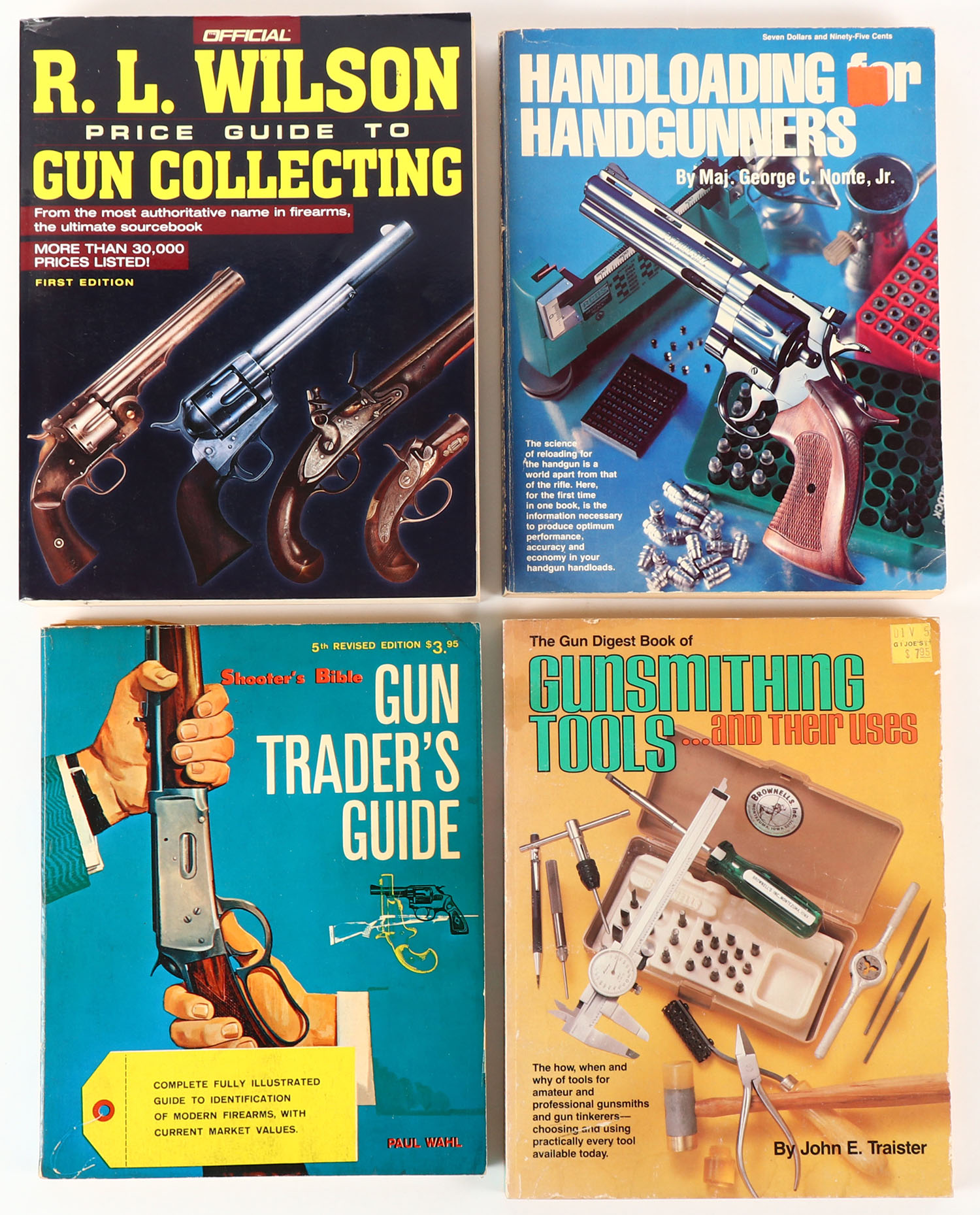 Lot of 4 Catalogs, (1) R.L. Wilson Price Guide To Gun Collecting (2) The Gun Digest Book Of Gunsmithing Tools And Their Uses (3) Shoots Bible Gun Traders Guide (4) Handloading For Handgunners, 8 1/2'' x 11'' color and b/w images. Grade: Very Good - Value: 2 to 20