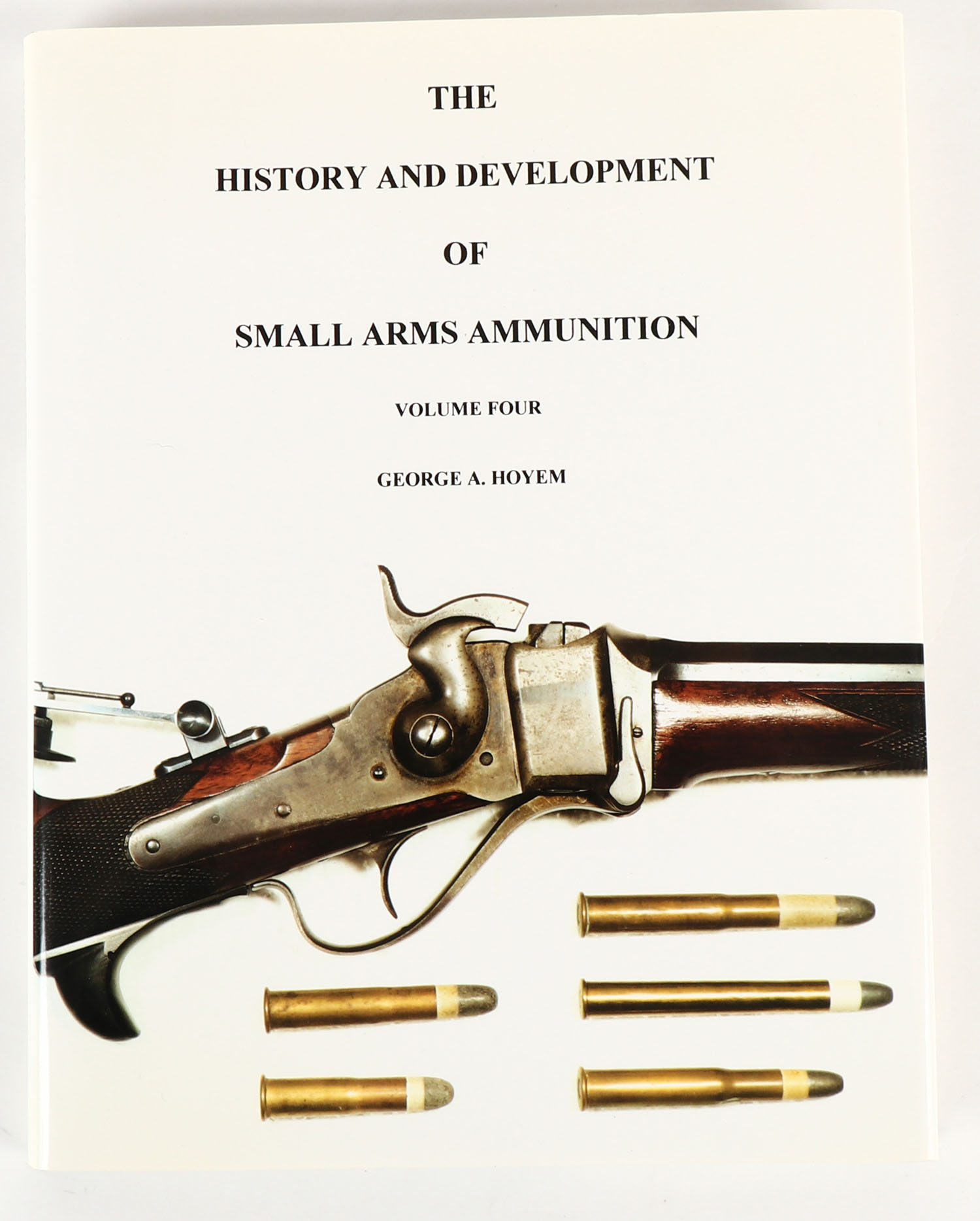 The History And Development Of Small Arms Ammunition Volume Four by George A. Hoyem, 1999, signed 263 copy of 500, 9'' x 11 1/2'', 235 pages, pages clean, binding tight, color and b/w images, hardcover and dust jacket mint. Grade: Mint - Value: 100 to 500