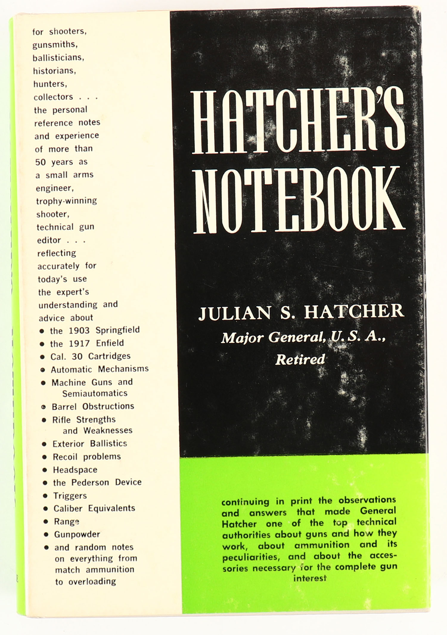 Hatchers Notebook by Julian S. Hatcher, 1966, 6 1/2'' x 9 1/2'', 640 pages, pages clean with writing on first blank page, b/w images, binding tight, hardcover very good, dust jacket very good. Grade: Very Good - Value: 10 to 50