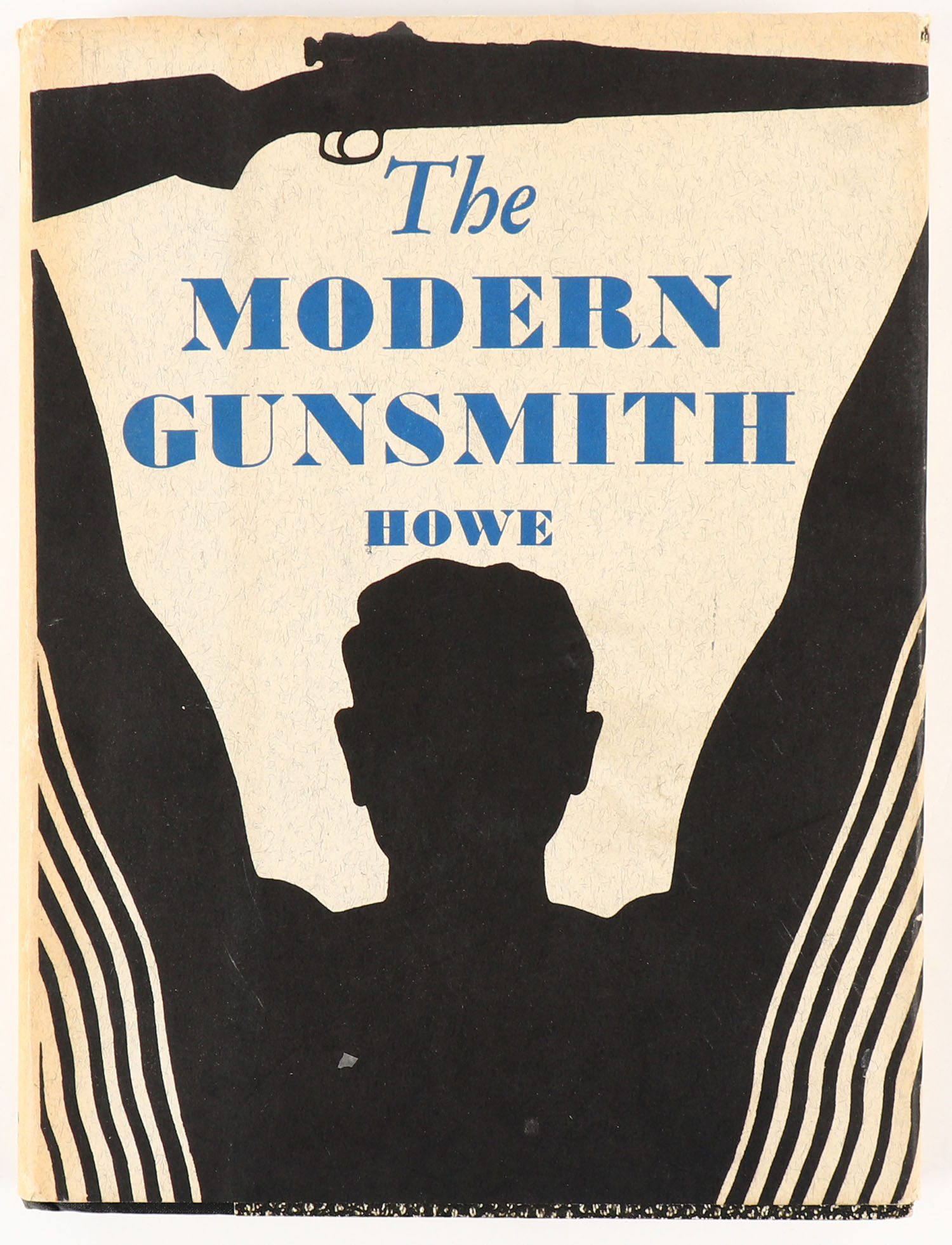 The Modern Gunsmith by Howe, 1954, 8'' x 10 1/2'', 424 pages, b/w images, pages mostly clean with some age soiling, binding tight, hardcover excellent, dust jacket very good. Grade: Excellent - Value: 2 to 20