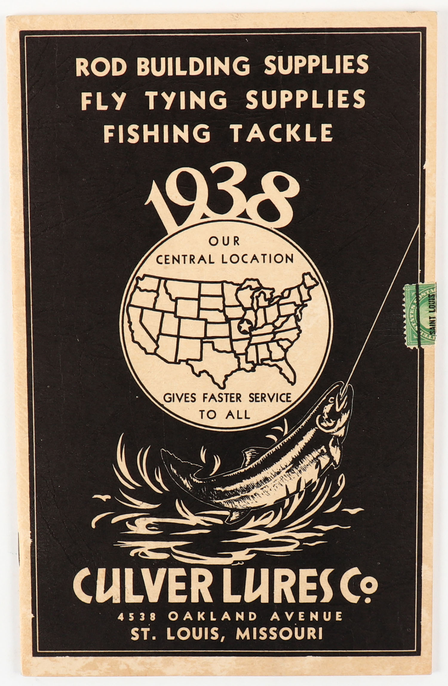 1938 Culver Lures Co. Fishing Tackle Catalog, full line catalog with 25 pages of items pictured, 5 1/2'' x 8 1/2'', pictures rods, reels & all lures, solid condition. Grade: Excellent - Value: 6 to 30