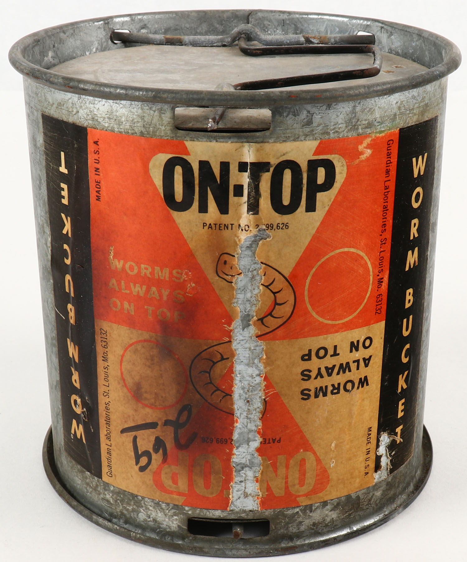 ON-TOP worm bucket, has lids on top & bottom so when you need a worm just flip it over & grab one. Grade: Very Good - Value: 6 to 30