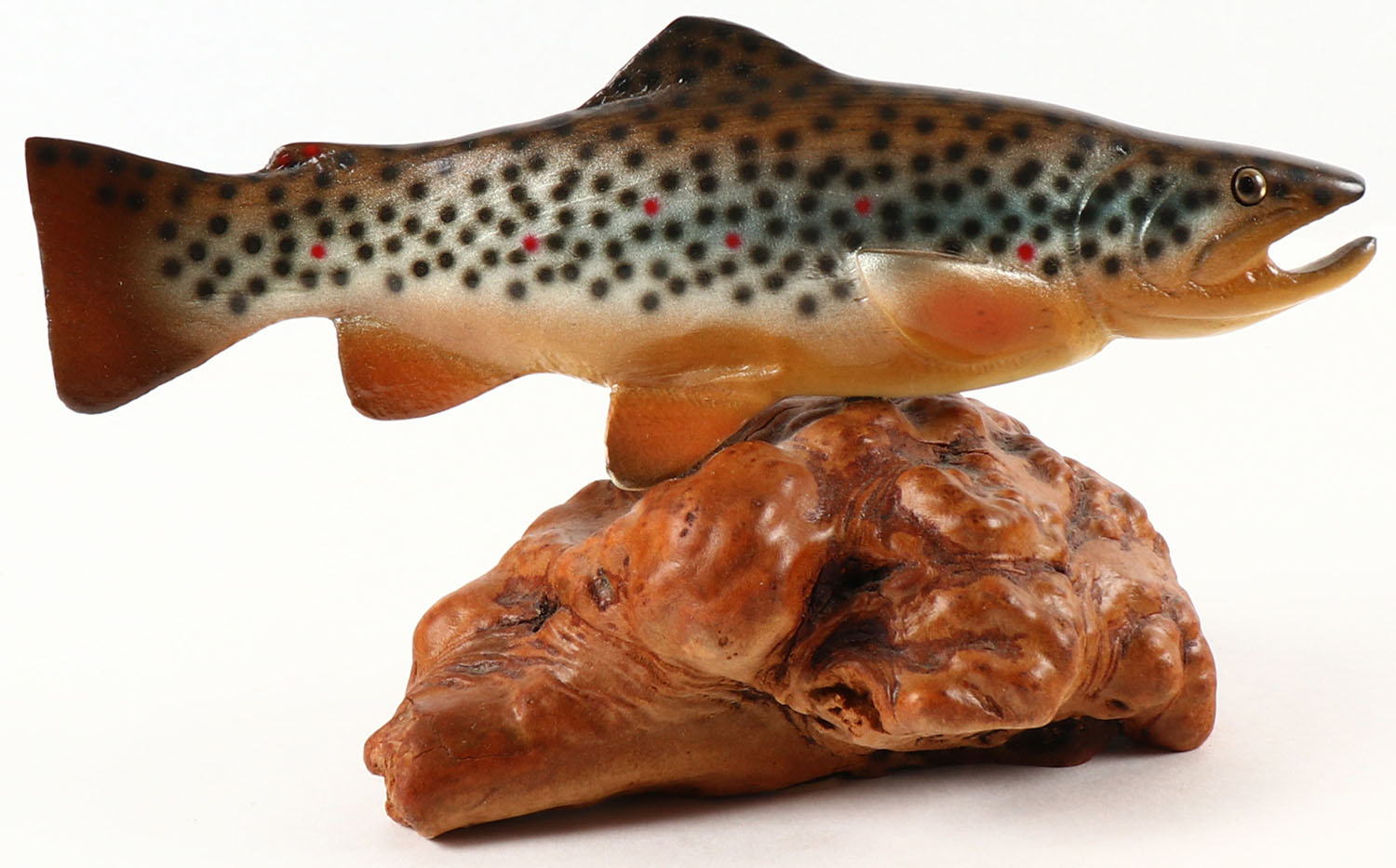 | Fish carving by Big Sky Carvers, MT, 7 1/2'' long. Grade: Exc...
