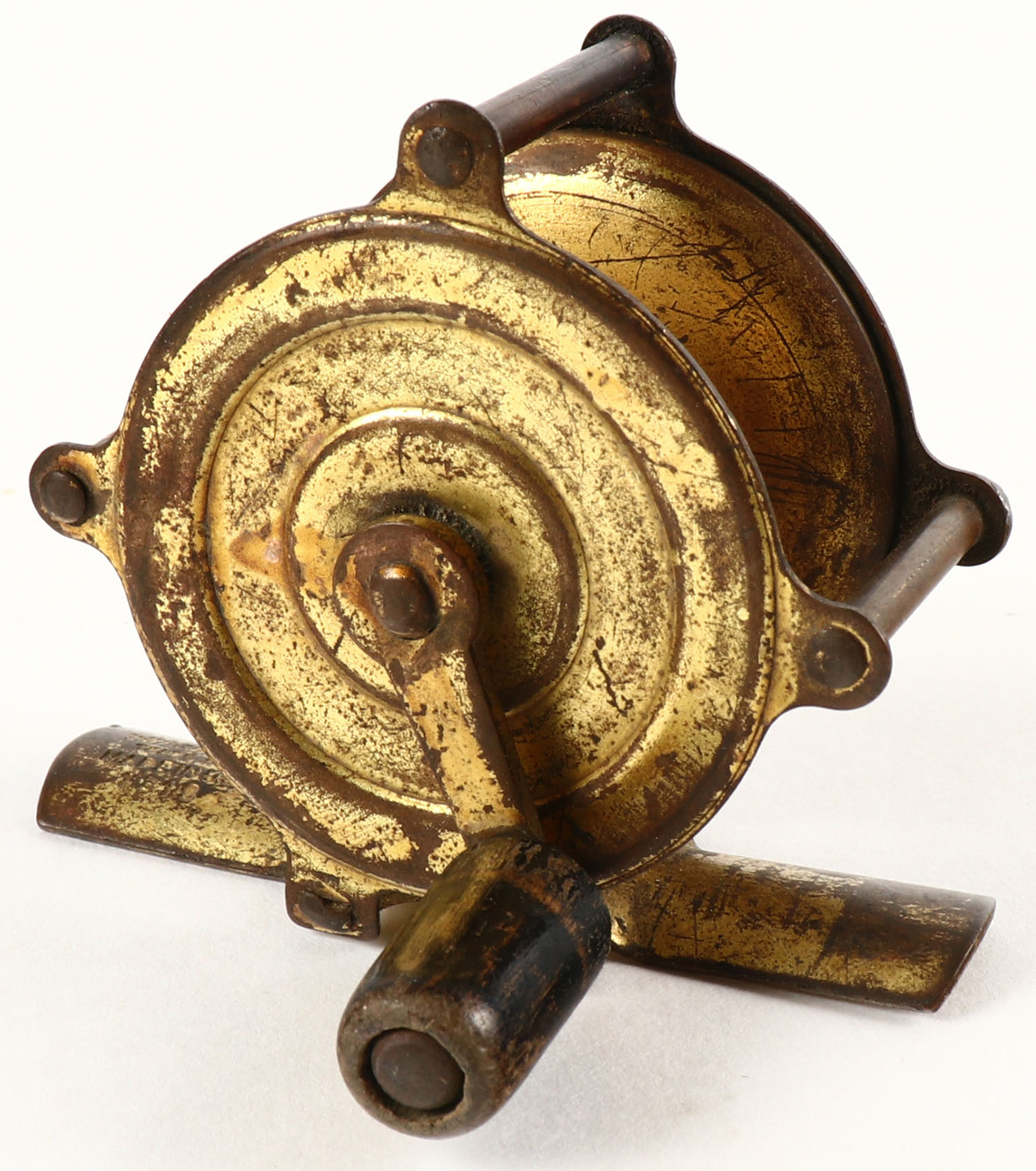 Winchester Brass No. 1319 reel, 40 Yd., reel turns nice, single black handle. Grade: Excellent ++ - Value: 20 to 60