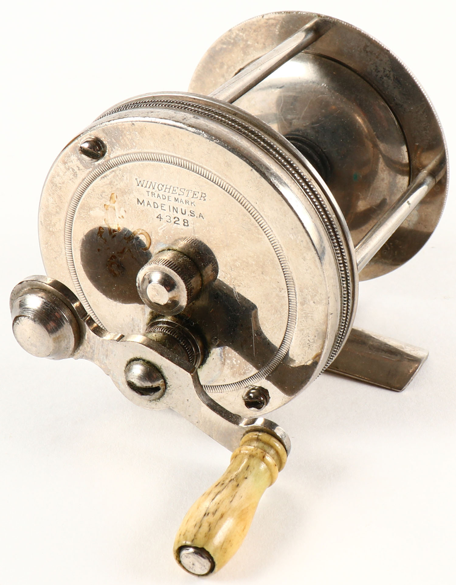 Winchester No. 2328 reel, 80 Yd., reel turns very nice, single buff handle, strong click. Grade: Excellent - Value: 20 to 60