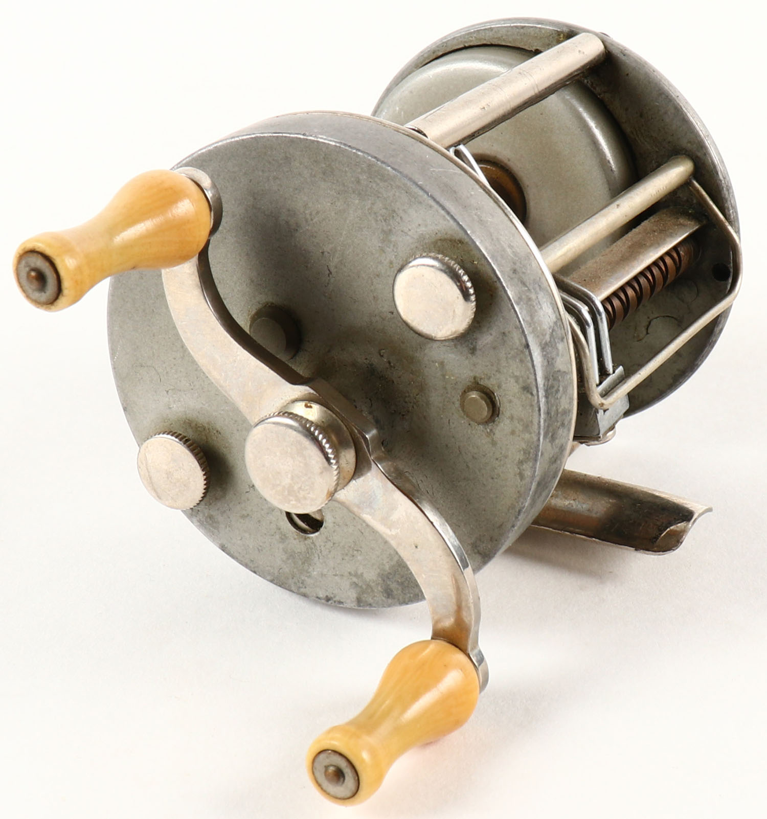James Heddon & Sons, Indian Chief No. 3AB, Bait Casting level wind reel, dual handle, strong click, works well. Grade: Excellent - Value: 10 to 40