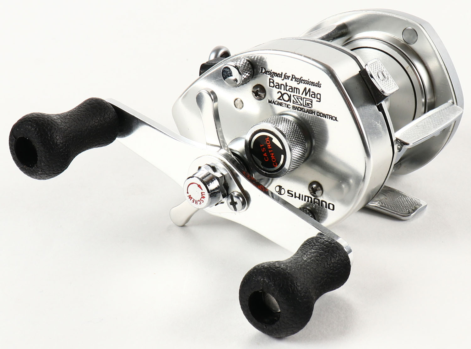 Shimano Bantom Mag 201 SG, level wind reel, dual handles. Grade: MINT - Value: 20 to 80