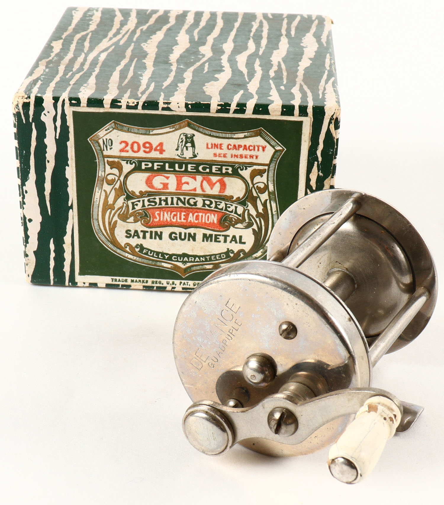 | Defiance Quadruple 60Yd reel in a Pflueger GEM No 2094 reel box....