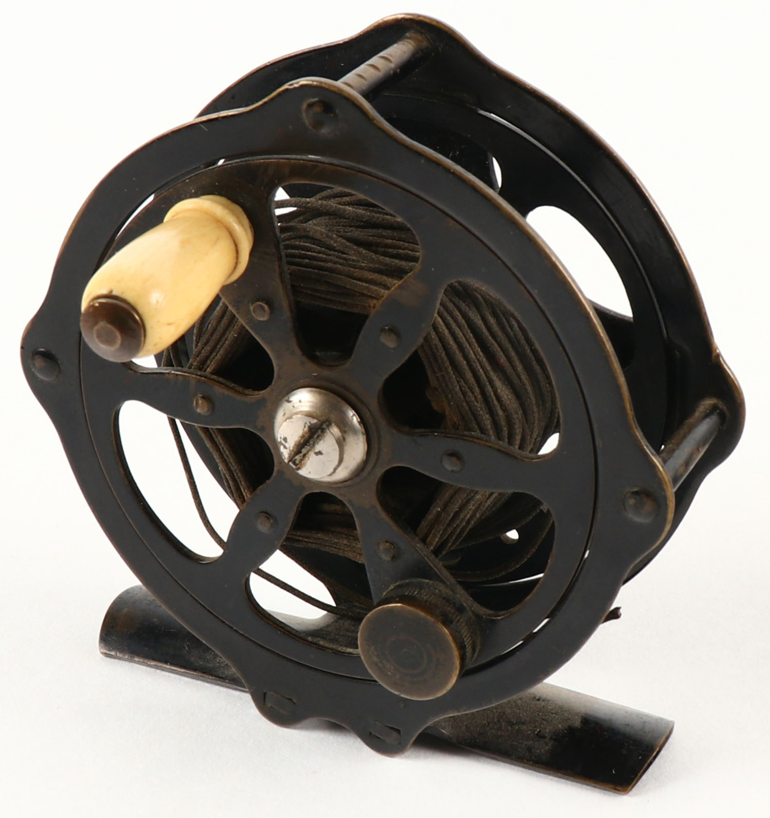 Winchester No. 1235 Fly reel, 60 Yd., reel turns nice, single buff handle, weak click. Grade: Excellent - Value: 10 to 60