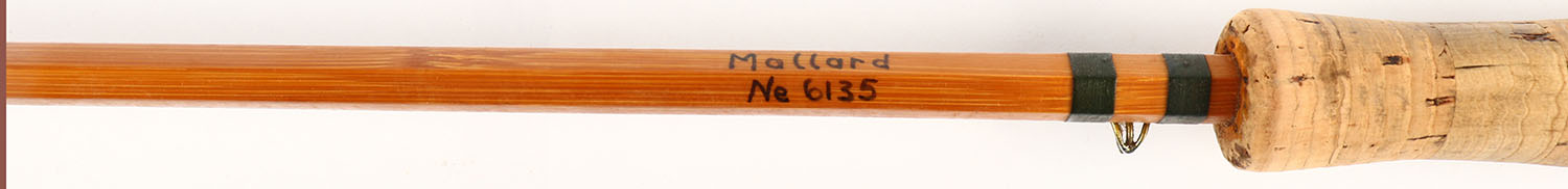 Rare Hardy Mallard, Bamboo Fly Rod, SN: 6135, 10', 9wt, 2/1, rod is very nice with wonderful wraps except for first one is missing one side of the wrap, cork is very nice and clean, marked cloth bag, Very Rare rod in wonderful condition. Grade: Excellent - Value: 100 to 400