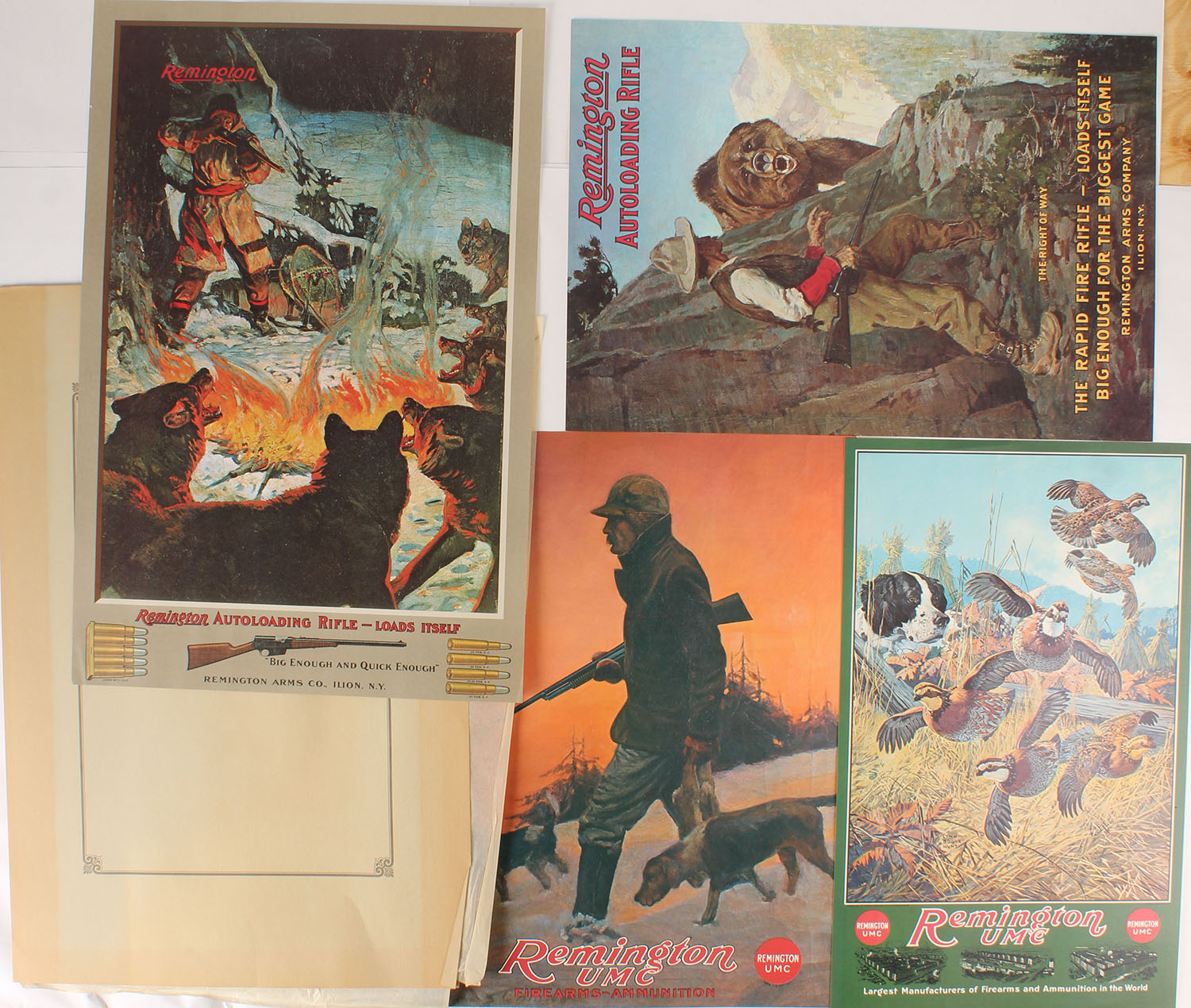 Lot of 4 Remington Poster, these were reproduced in 1970 by Remington, in original sleeve and cardboard box, all very solid, poster are very bright and clean, has original box. Grade: MINT - Value: 50 to 200