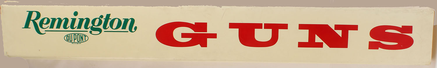 REMINGTON GUNS large light cover for Remington retail gun cabinet display, 48'' wide, Has nice color to lettering. Grade: Excellent - Value: 20 to 100