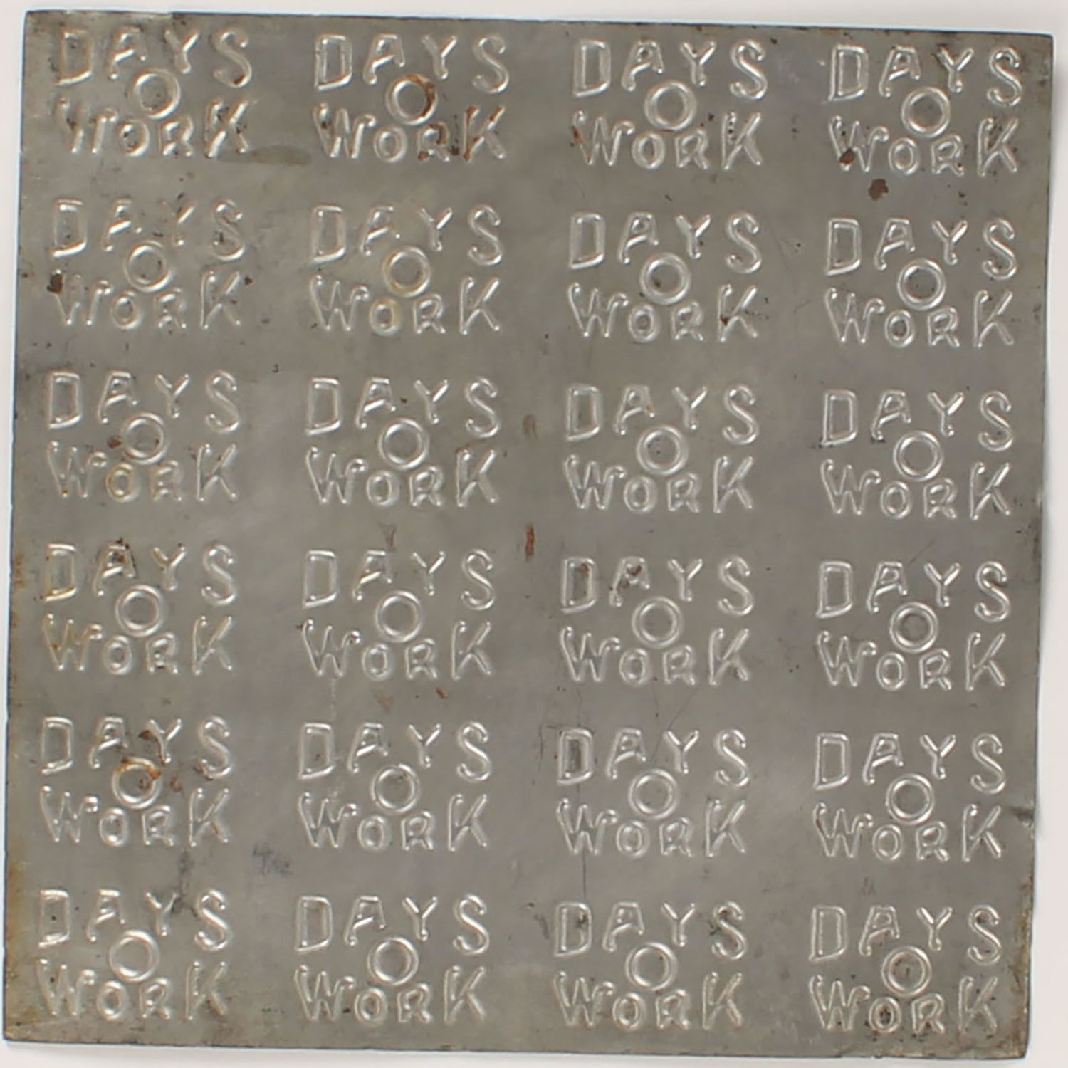 Vintage ''DAYS O WORK'' Chewing Tobacco Tin stamp mold press, 12'' square. Grade: Excellent - Value: 2 to 30