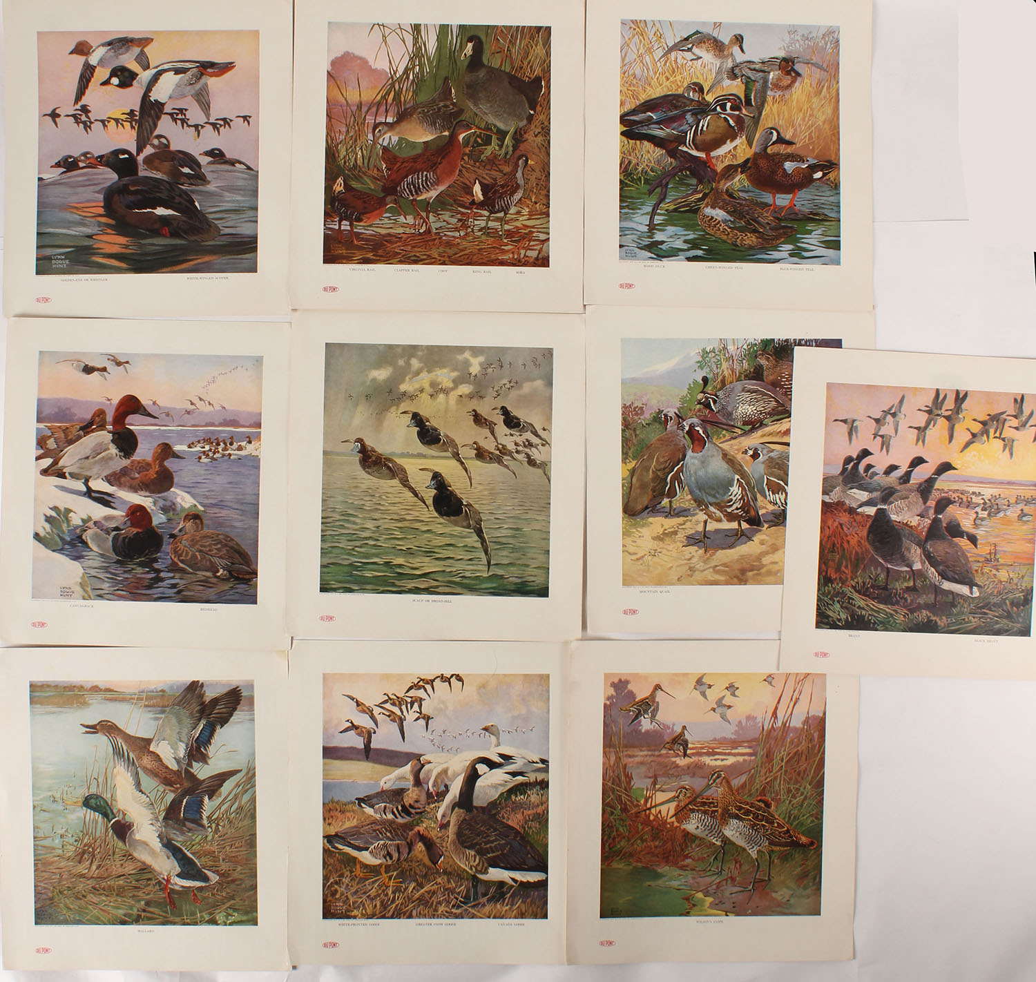 Set of 18 Lynn Bogue Hunt prints done for E.I. Du Pont de Nemours & Co, ''OUR AMERICAN GAME BIRDS'', has original box, 13'' x 14 1/2'', all have great color. Grade: Excellent ++ - Value: 50 to 250