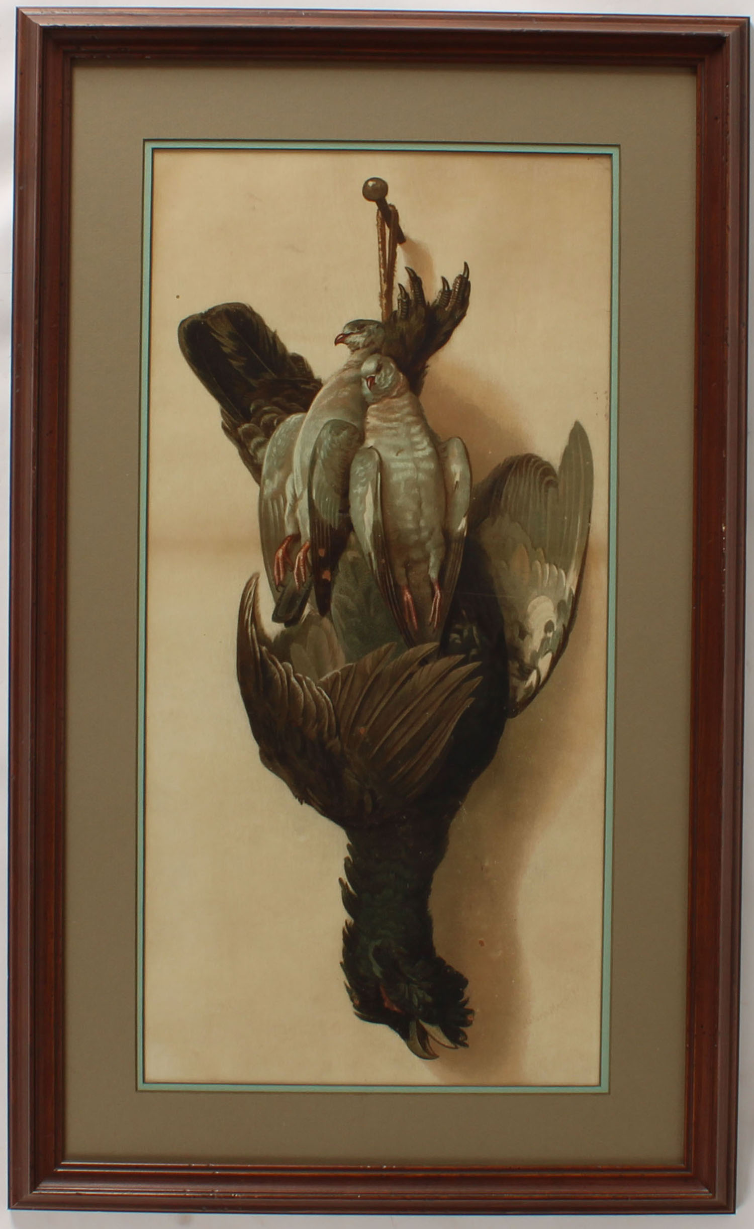 Helena Maguire print pictures hanging birds, image size 11 1/2 x 23'', framed. Grade: Excellent - Value: 20 to 200