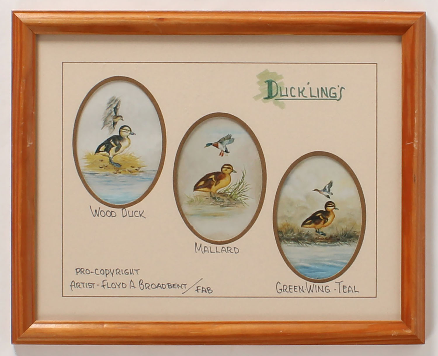 Floyd A. Broadbent/FAB DUCK'LING'S, pictures chicks from Wood Duck, Mallard & Green-Wing Teal, frame size 15'' x 13''. Grade: Excellent - Value: 10 to 100