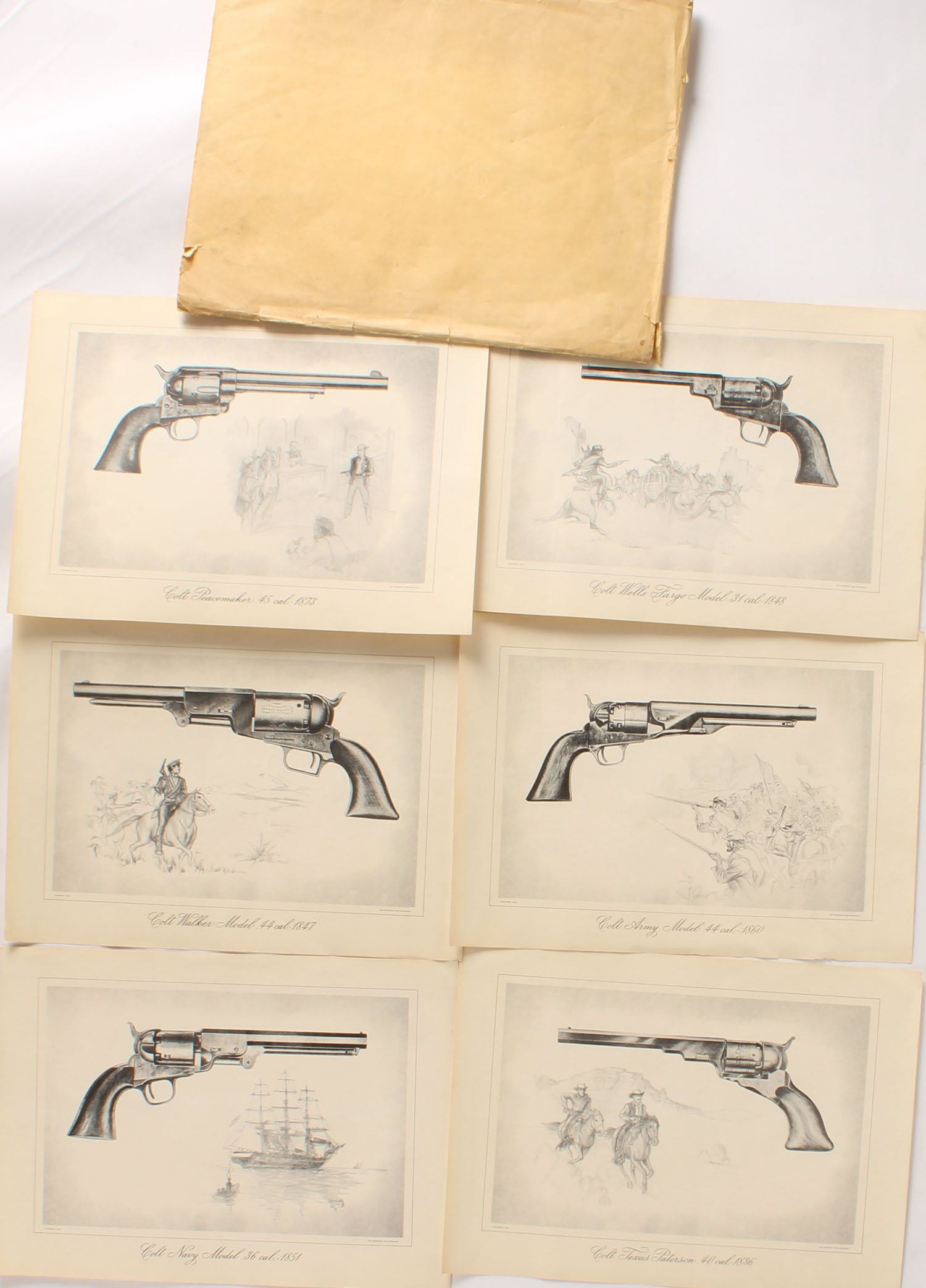 Lot of 6 Colt Prints of pistols, image size 11'' x 7 1/4''. Grade: Very Good ++ - Value: 10 to 100