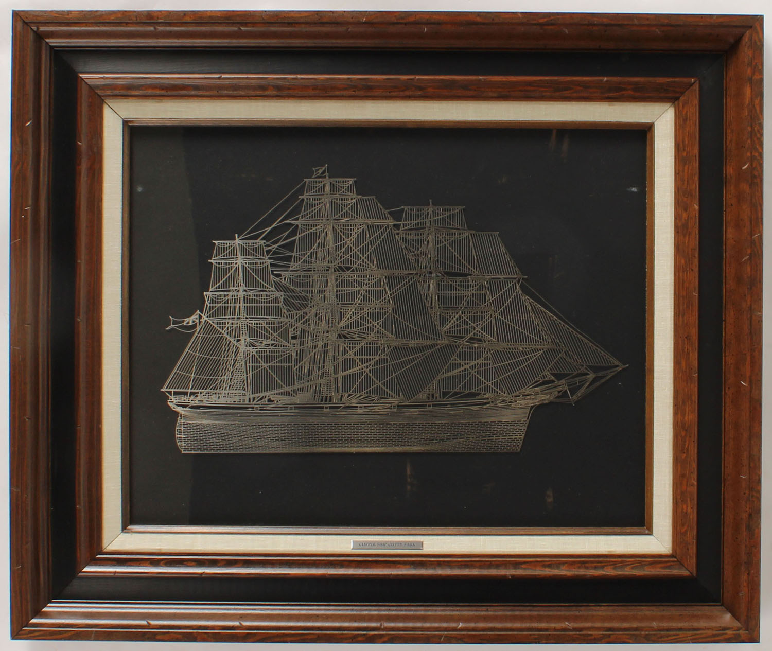 Sterling Silver silhouette of THE CLIPPER SHIP CUTTY SARK, image size 17 1/2'' x 14'', framed & matted. Grade: MINT - Value: 2 to 100